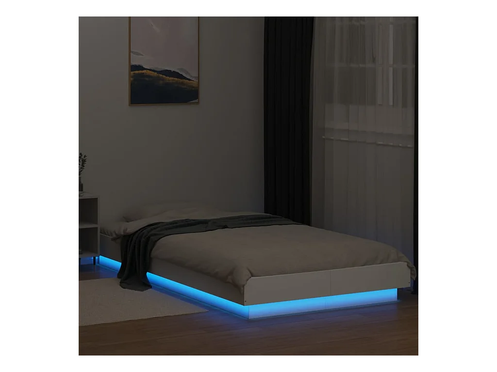 Lit simple avec lumières LED blanc 90x190cm bois d’ingénierie FR78712