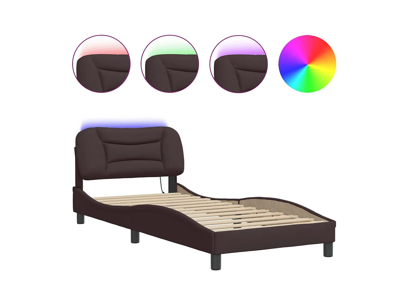 Lit simple avec lumières LED marron foncé 80x200 cm tissu FR88214