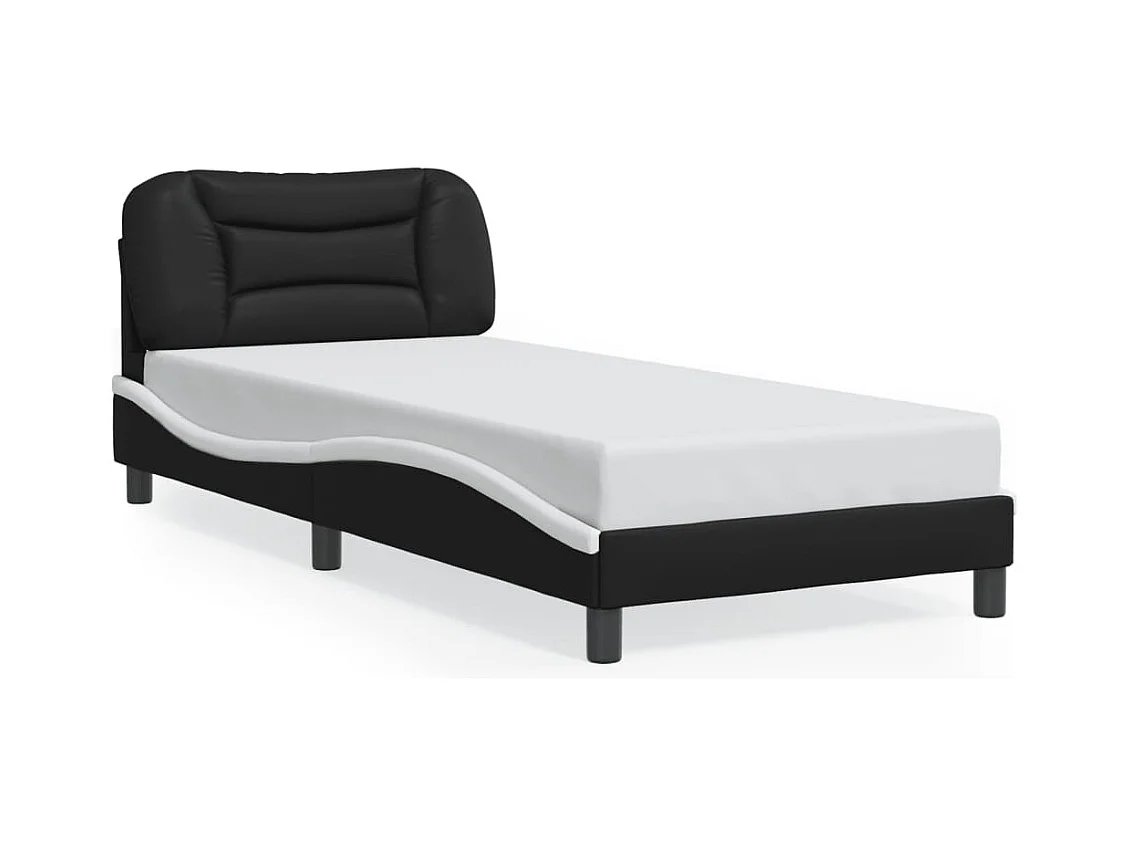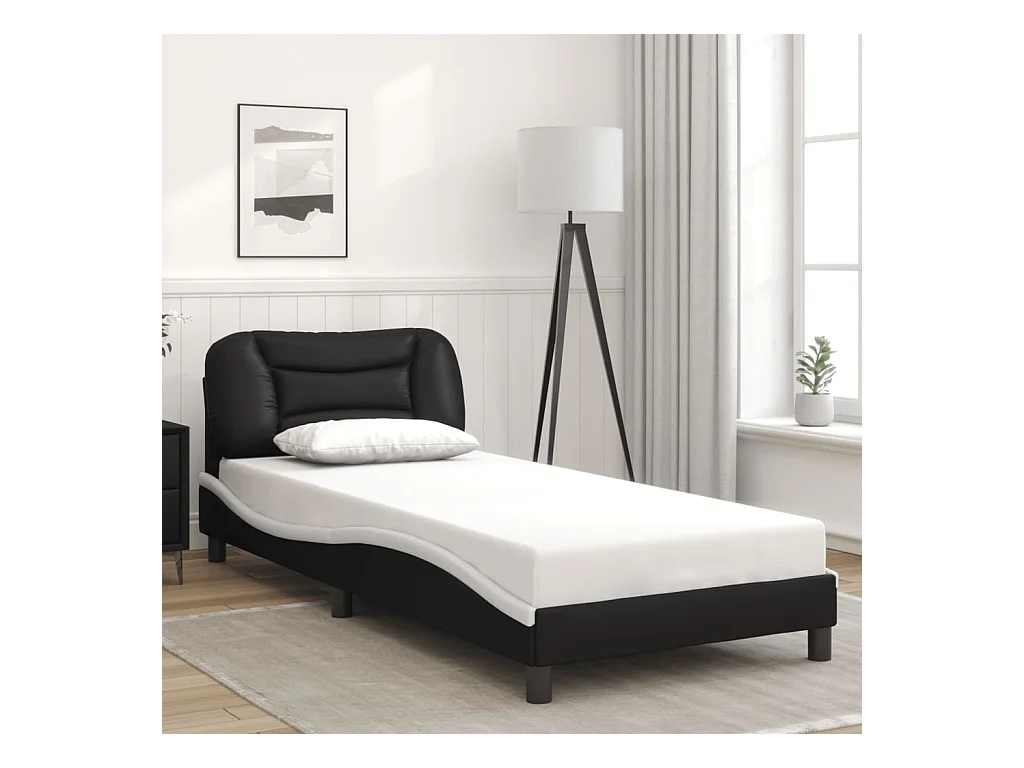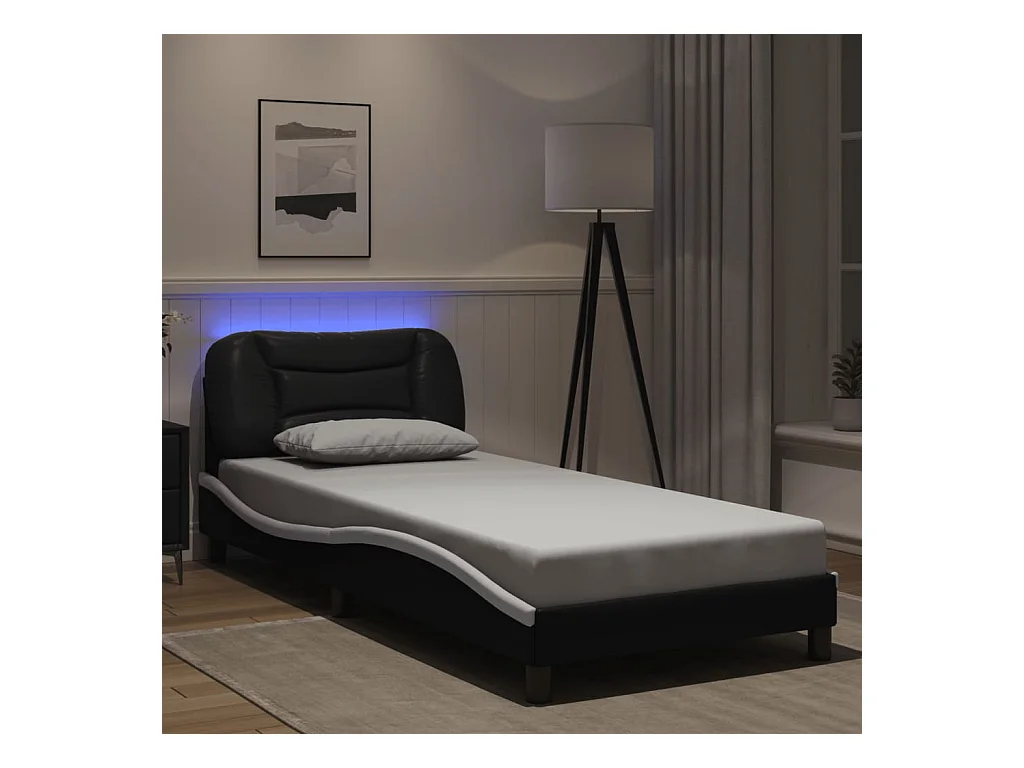 Lit simple avec lumières LED noir blanc 90x190 cm similicuir FR67616