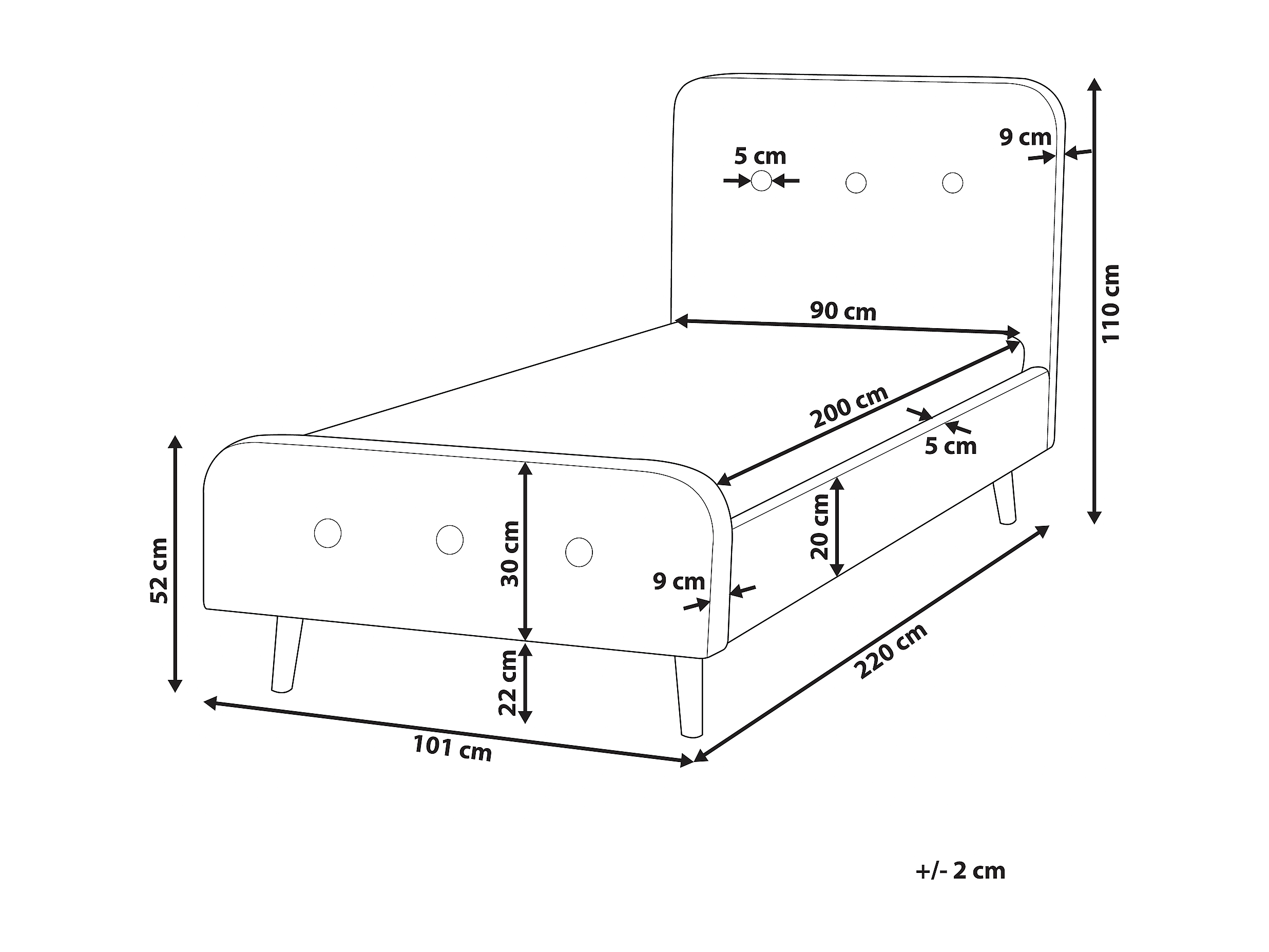 Lit avec sommier Tissu RENNES 90 x 200 cm Gris foncé
