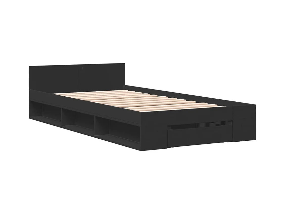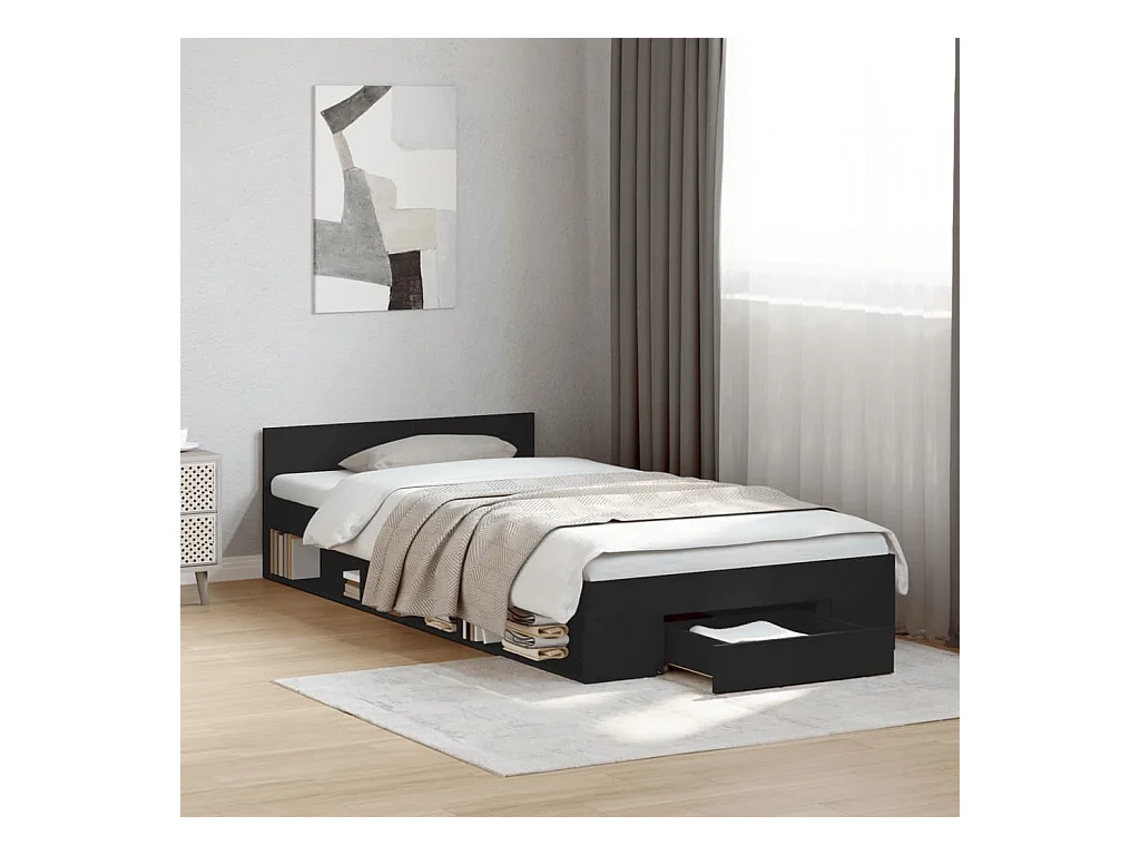 Lit simple avec tiroir noir 100x200 cm bois d'ingénierie FR39714