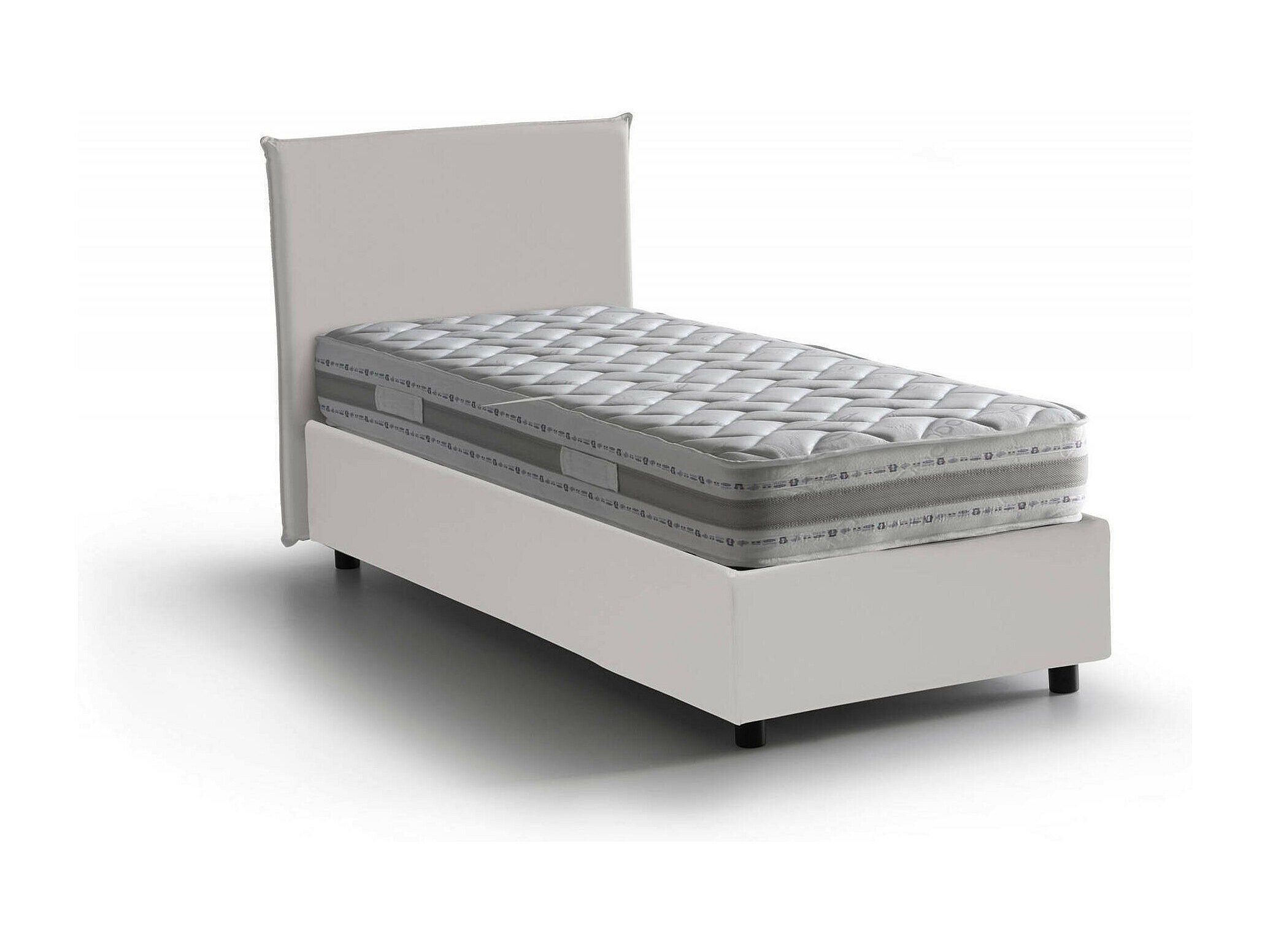 Lit simple Brigitta, Lit coffre avec revêtement en éco-cuir, 100% Made in Italy, Ouverture frontale, avec matelas 80x190 cm inclus, Blanc