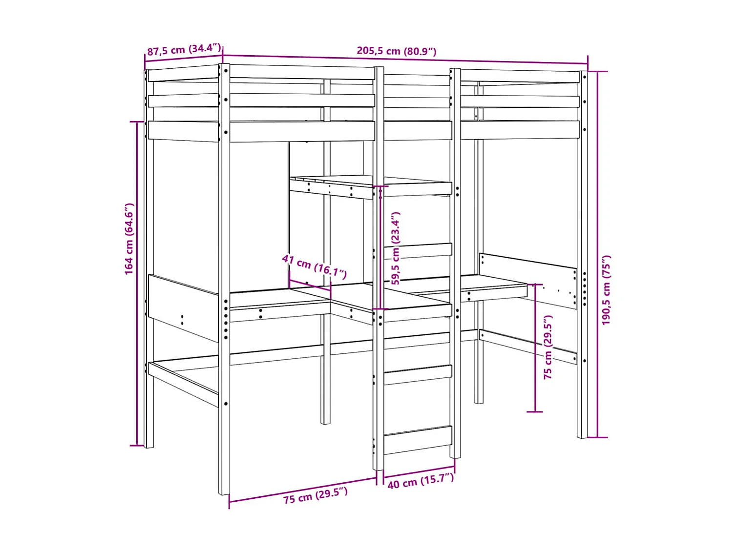 Lit simple-Cadre de lit superposé sans matelas 80x200cm bois de pin massif