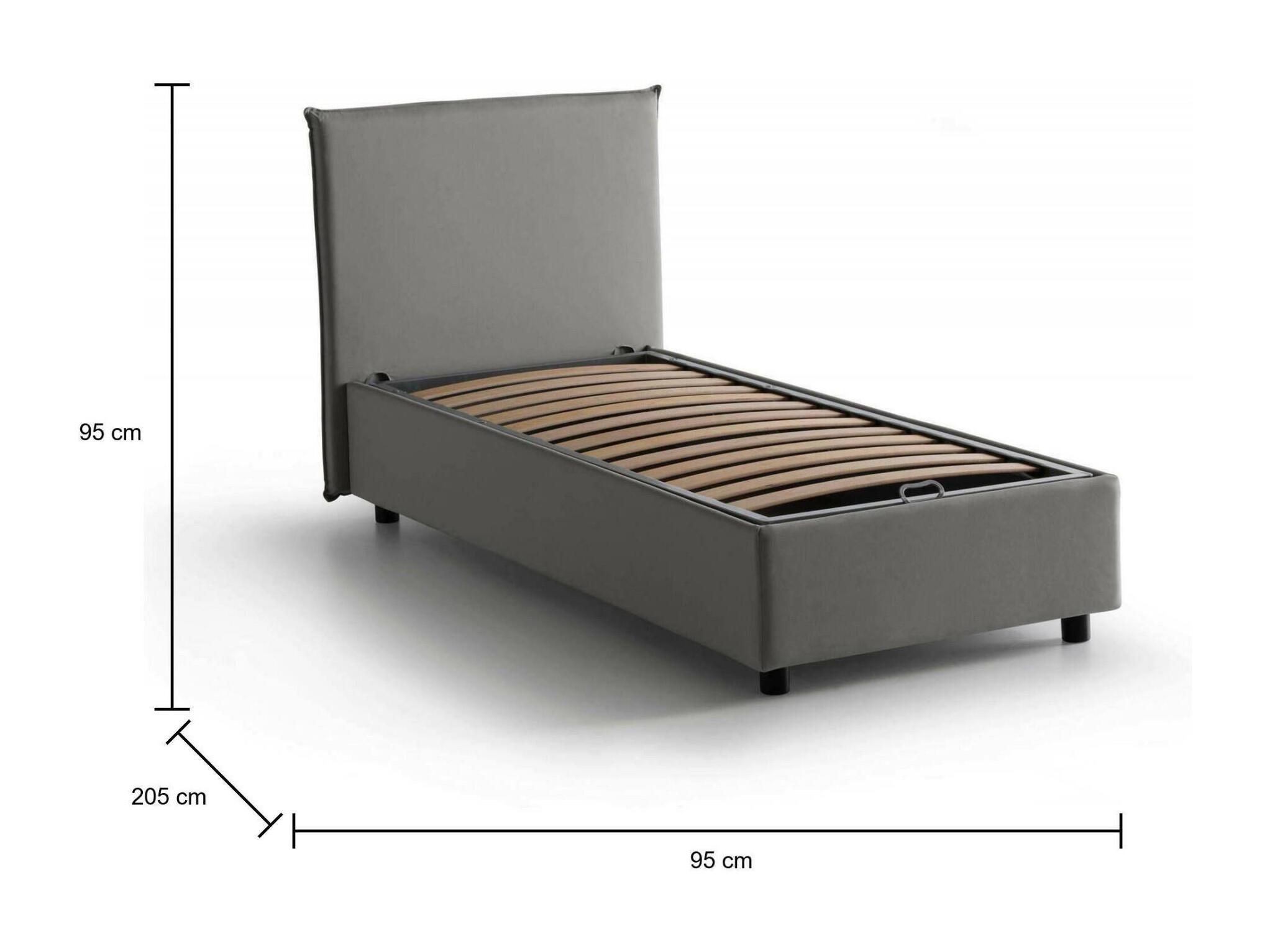 Lit simple Candida, Lit coffre avec revêtement en tissu, 100% Made in Italy, Ouverture latérale, adapté pour matelas 80x190 cm, Gris