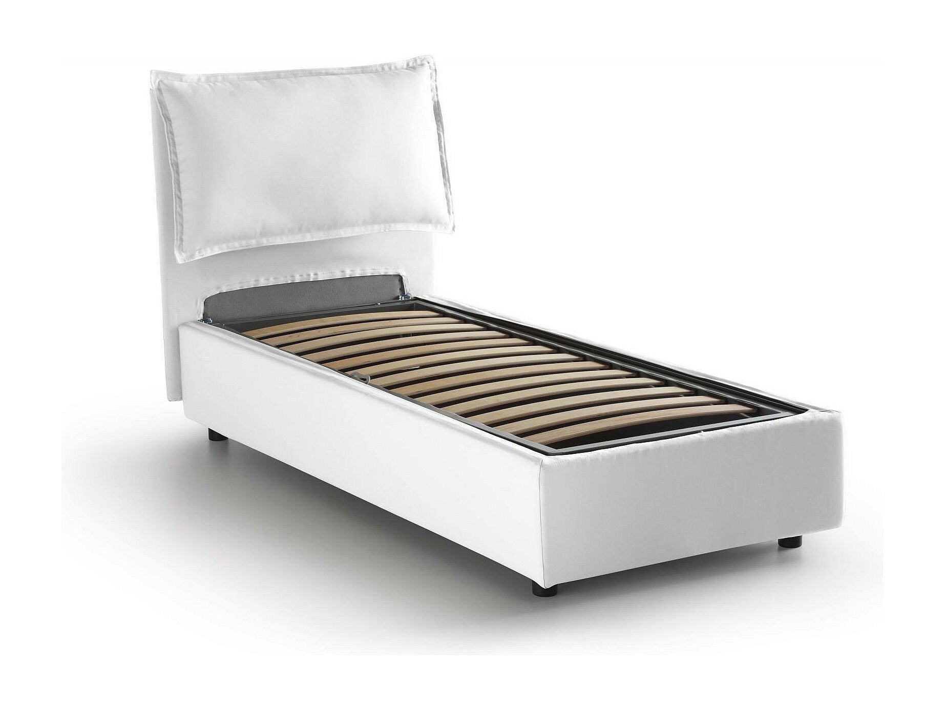 Lit simple Carla, Lit coffre avec revêtement en tissu, 100% Made in Italy, Ouverture frontale, avec matelas 90x200 cm inclus, Crème