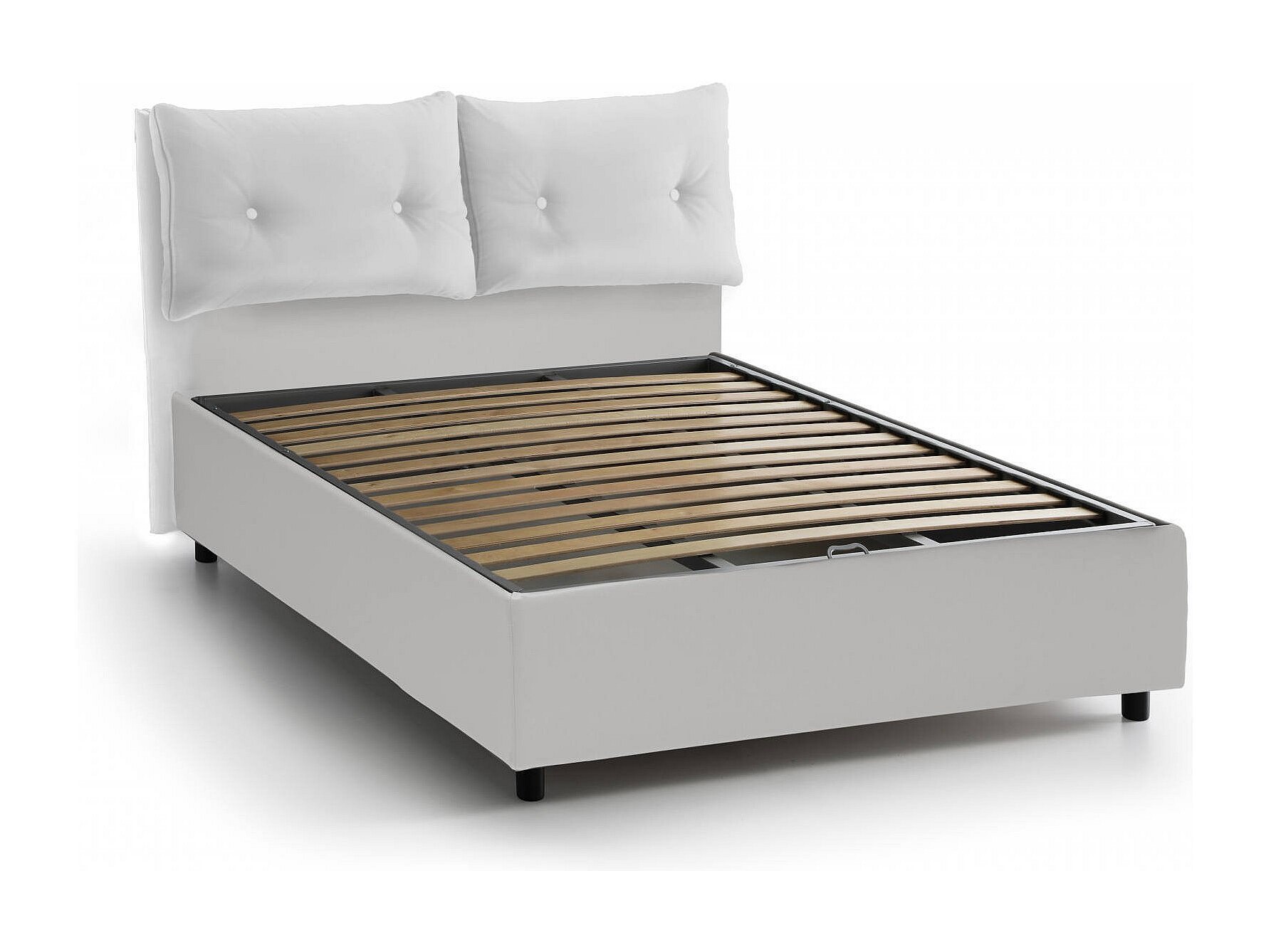 Lit simple Chantal, Lit coffre avec revêtement en éco-cuir, 100% Made in Italy, Ouverture frontale, avec matelas 80x190 cm inclus, Blanc