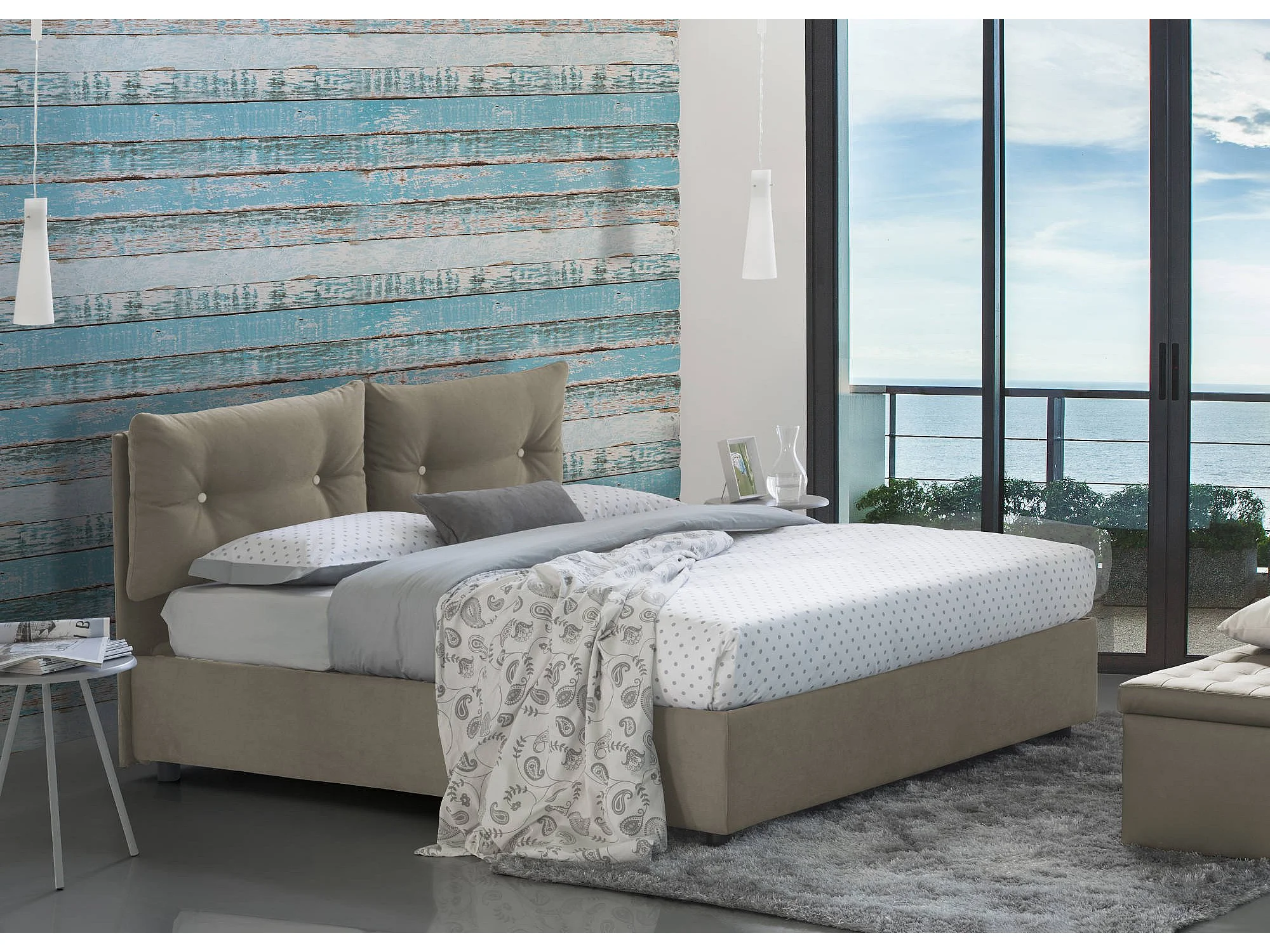 Lit simple Daais, Lit coffre avec revêtement en tissu, 100% Made in Italy, Ouverture frontale, adapté pour matelas 80x190 cm, Taupe