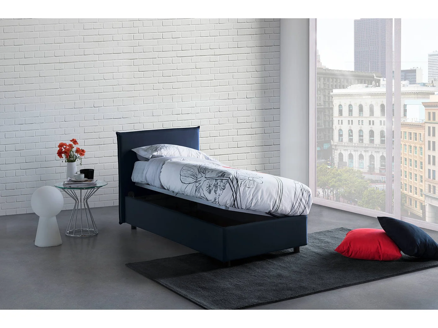 Lit simple Darut, Lit coffre avec revêtement en tissu, 100% Made in Italy, Ouverture latérale, adapté pour matelas 80x190 cm, Bleu