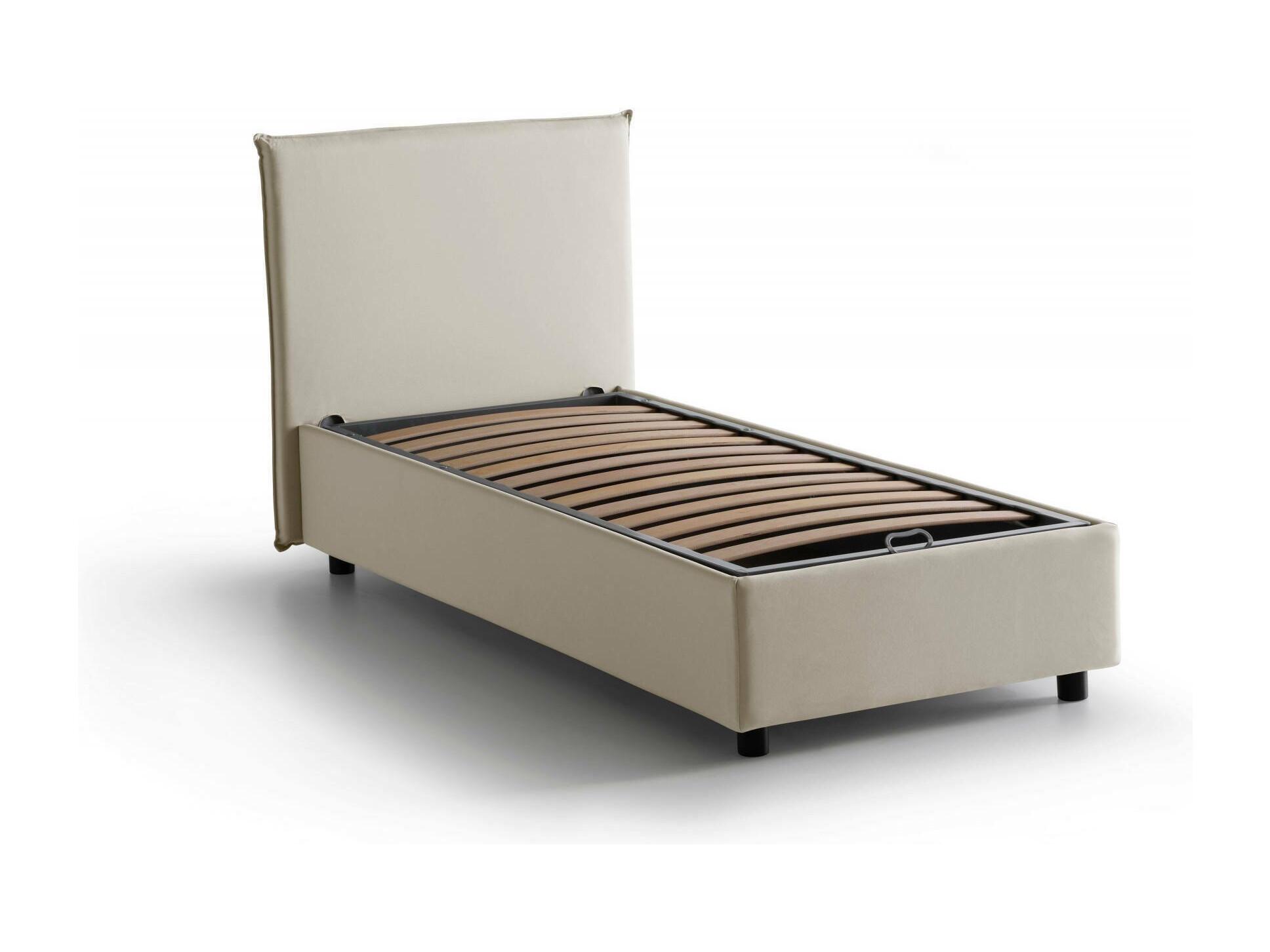 Lit simple Dbacchi, Lit coffre avec revêtement en tissu, 100% Made in Italy, Ouverture frontale, adapté pour matelas 80x200 cm, Beige