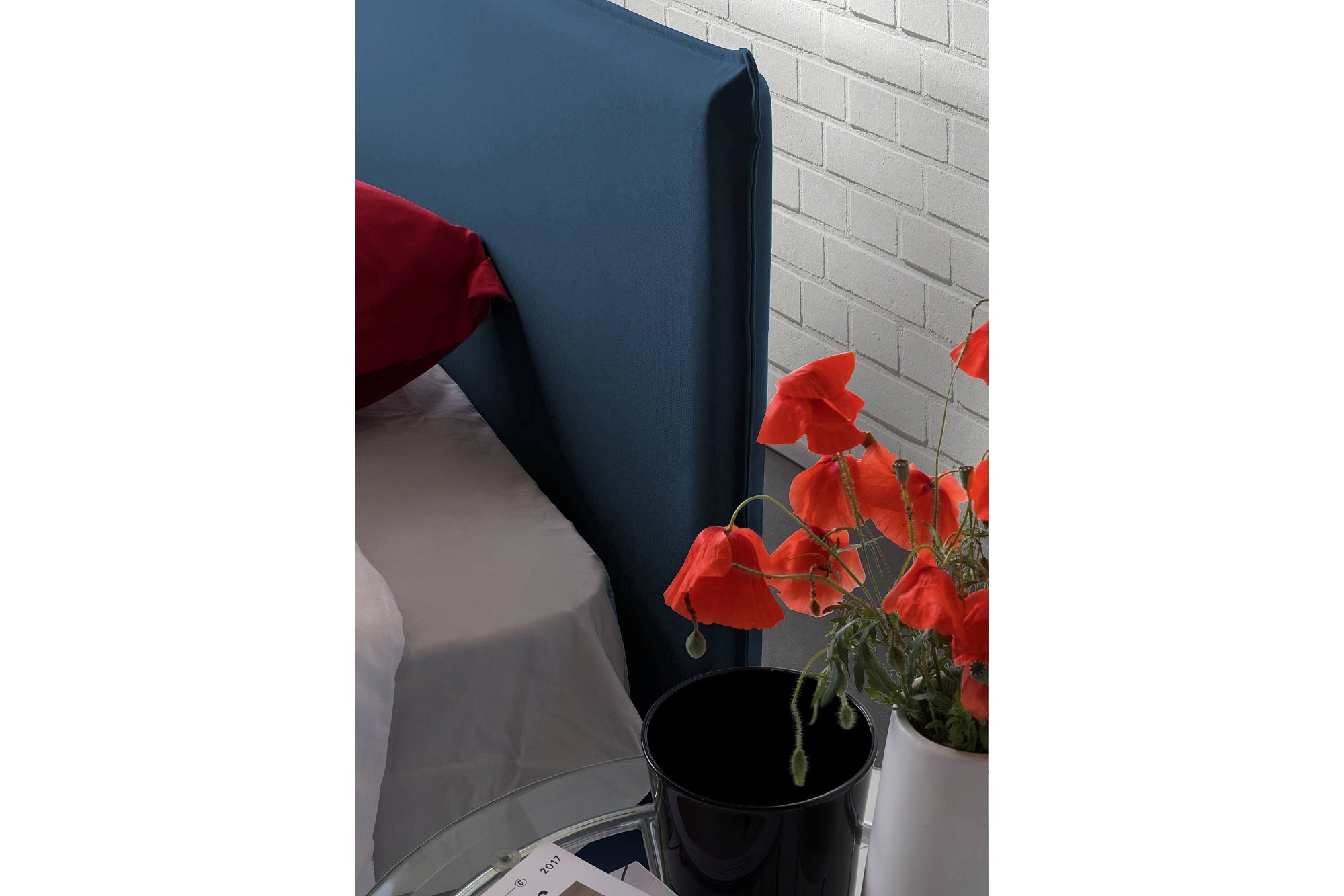 Lit simple Dbach, Lit coffre avec revêtement en tissu, 100% Made in Italy, Ouverture frontale, avec matelas 80x200 cm inclus, Bleu