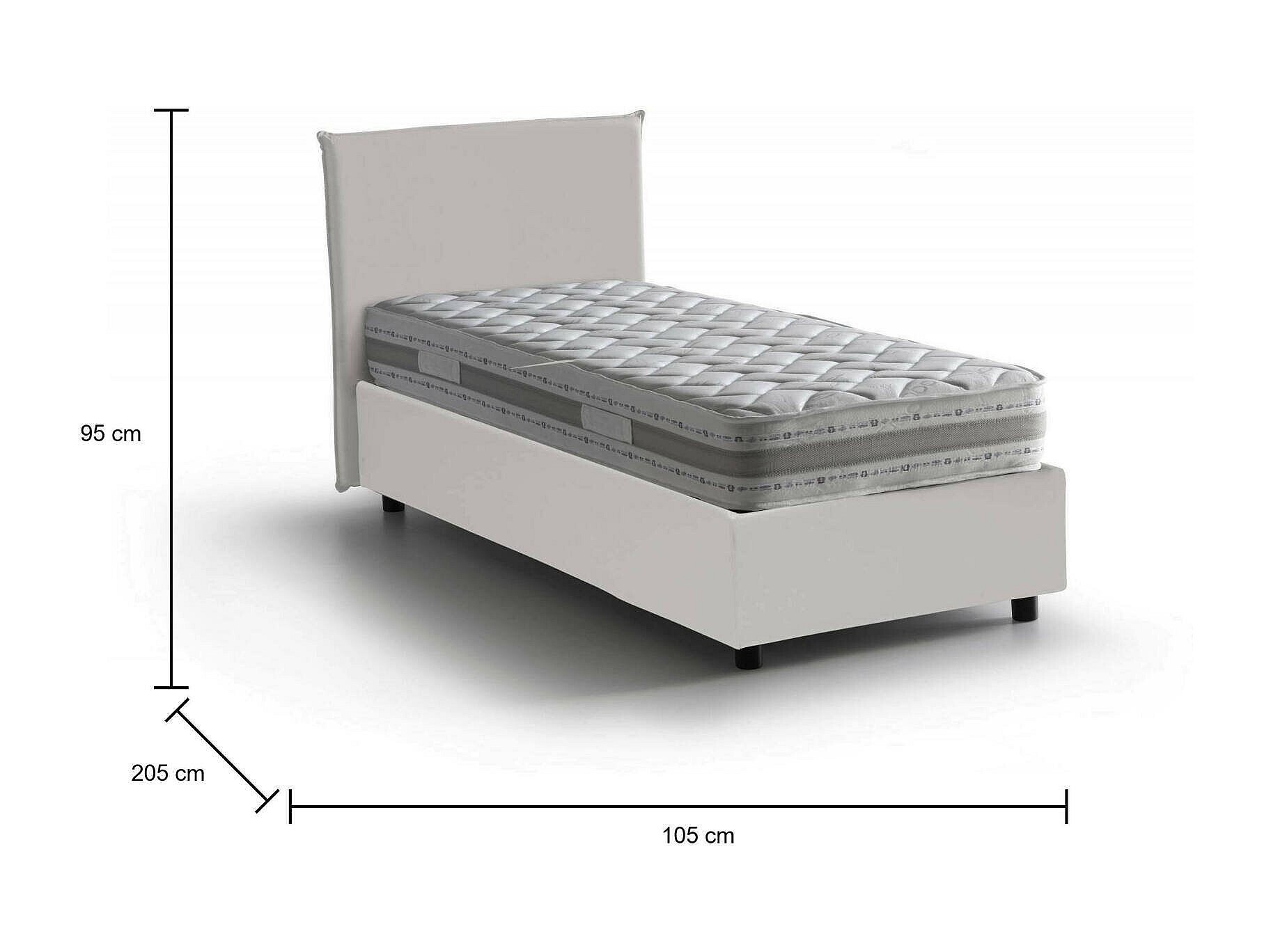 Lit simple Dbaiocc, Lit coffre avec revêtement en éco-cuir, 100% Made in Italy, Ouverture frontale, avec matelas 90x190 cm inclus, Blanc