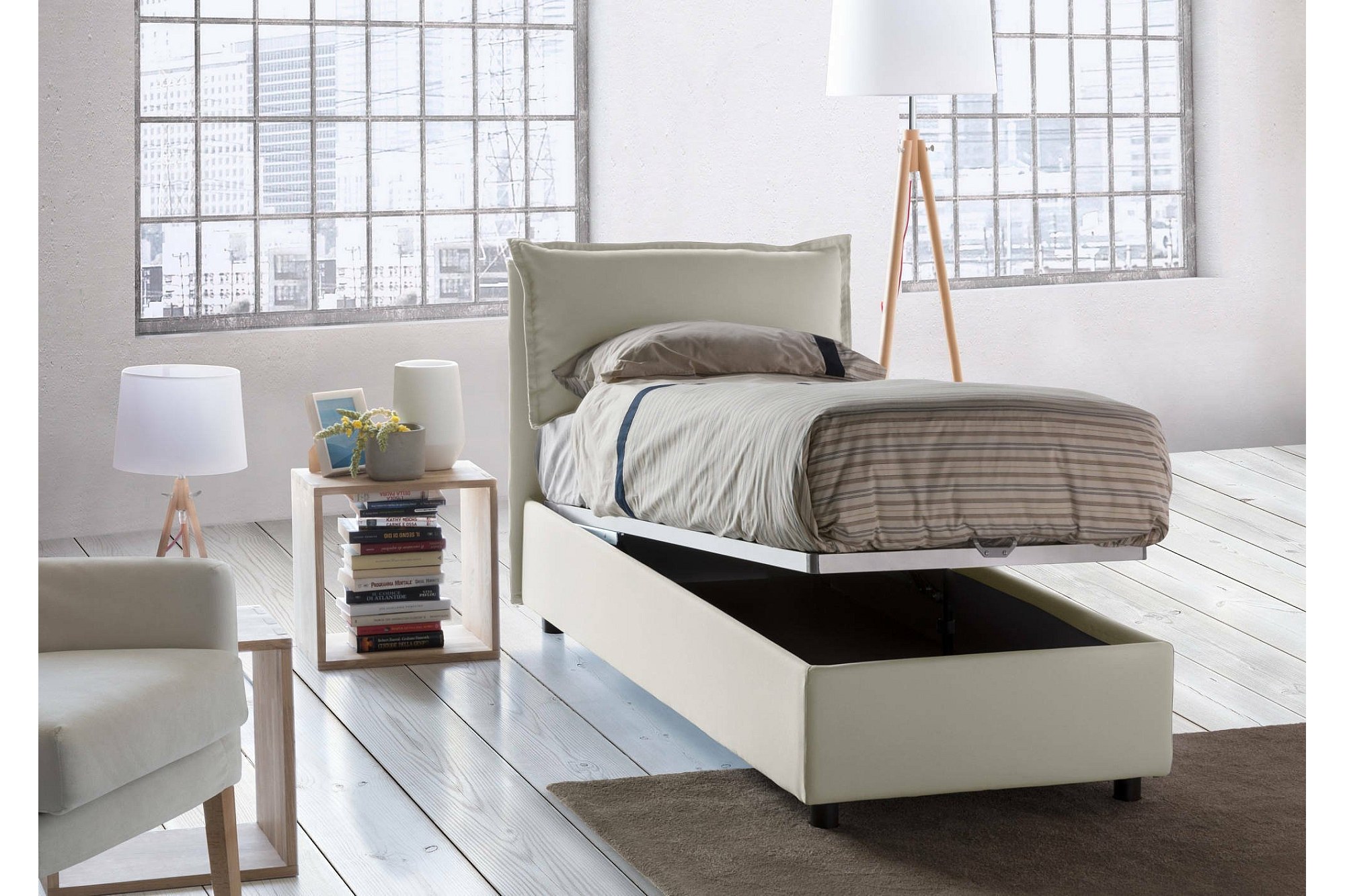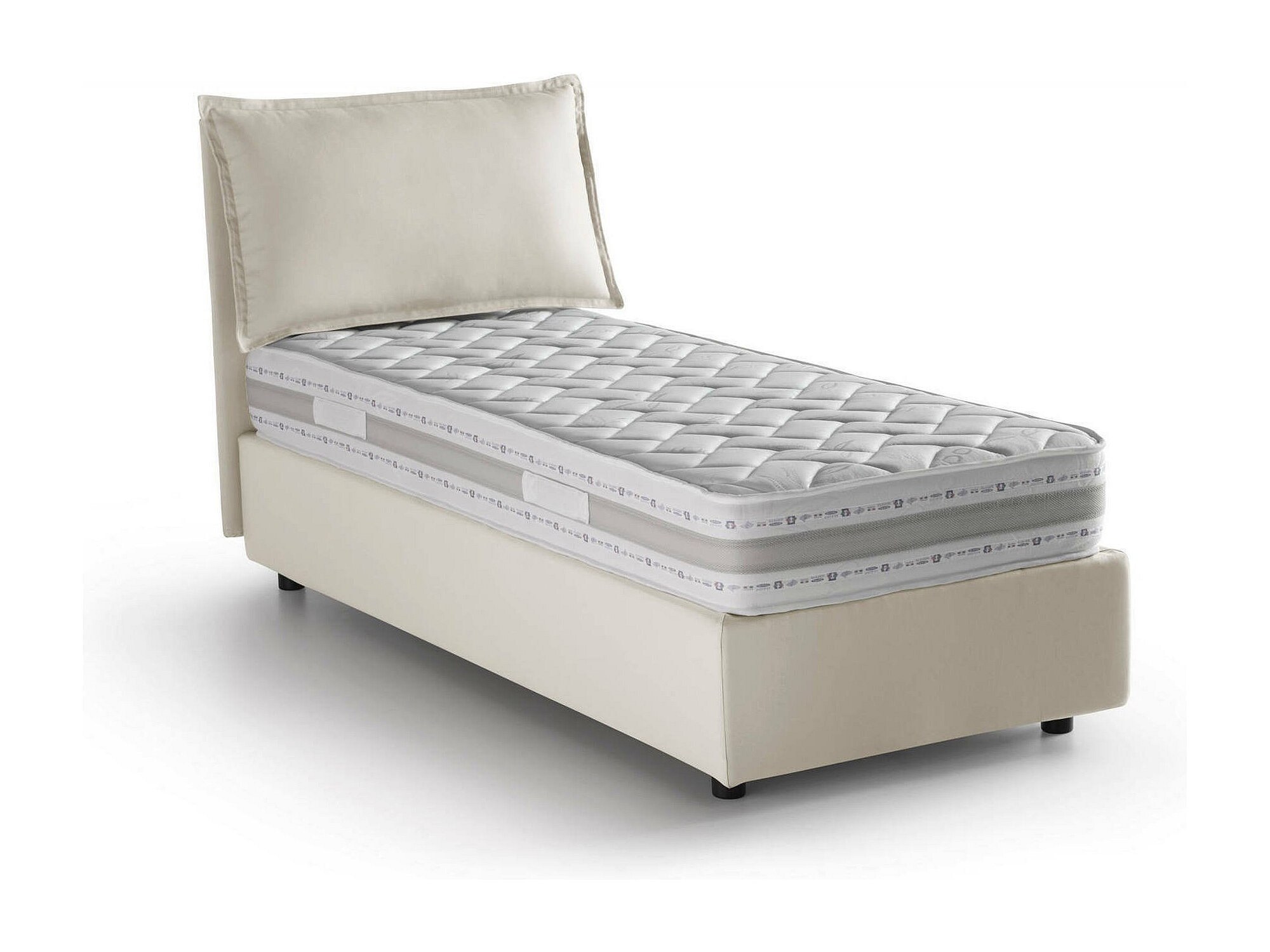 Lit simple Dcrnigo, Lit coffre avec revêtement en tissu, 100% Made in Italy, Ouverture frontale, avec matelas 90x200 cm inclus, Beige