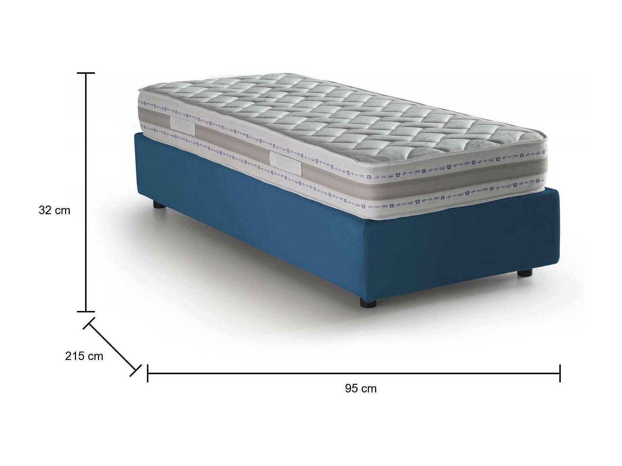 Lit simple Dmaiell, Lit coffre avec revêtement en tissu, 100% Made in Italy, Ouverture frontale, avec matelas 80x200 cm inclus, Bleu