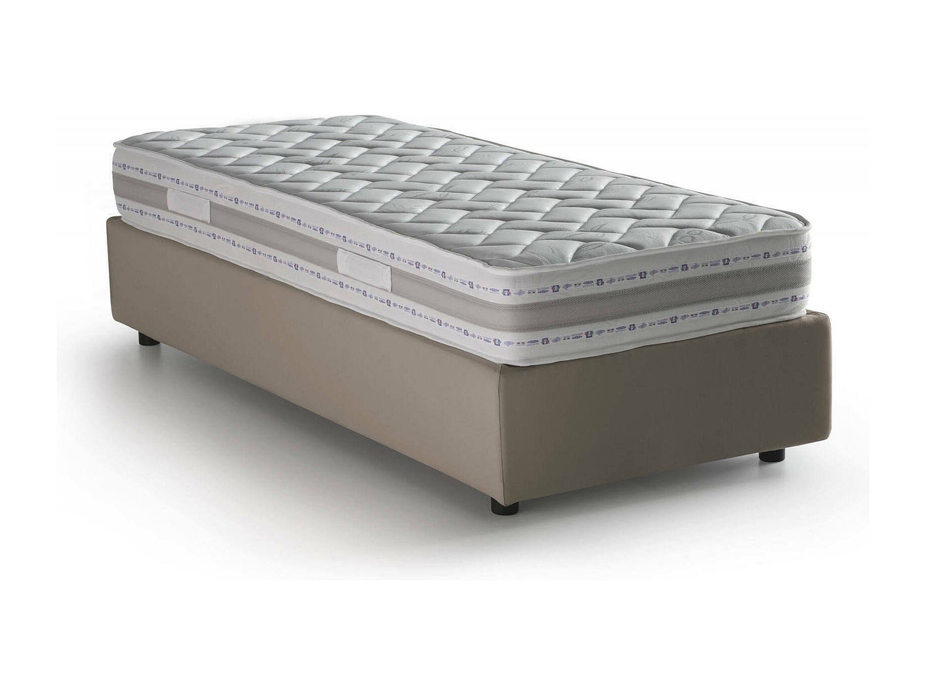Lit simple Dmeol, Lit coffre avec revêtement en tissu, 100% Made in Italy, Ouverture frontale, avec matelas 90x190 cm inclus, Taupe