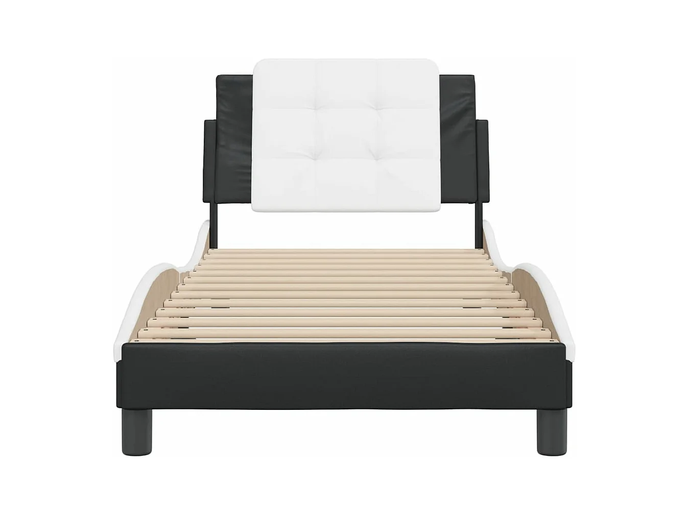 Lit simple et tête de lit noir et blanc 100x200 cm similicuir FR51412