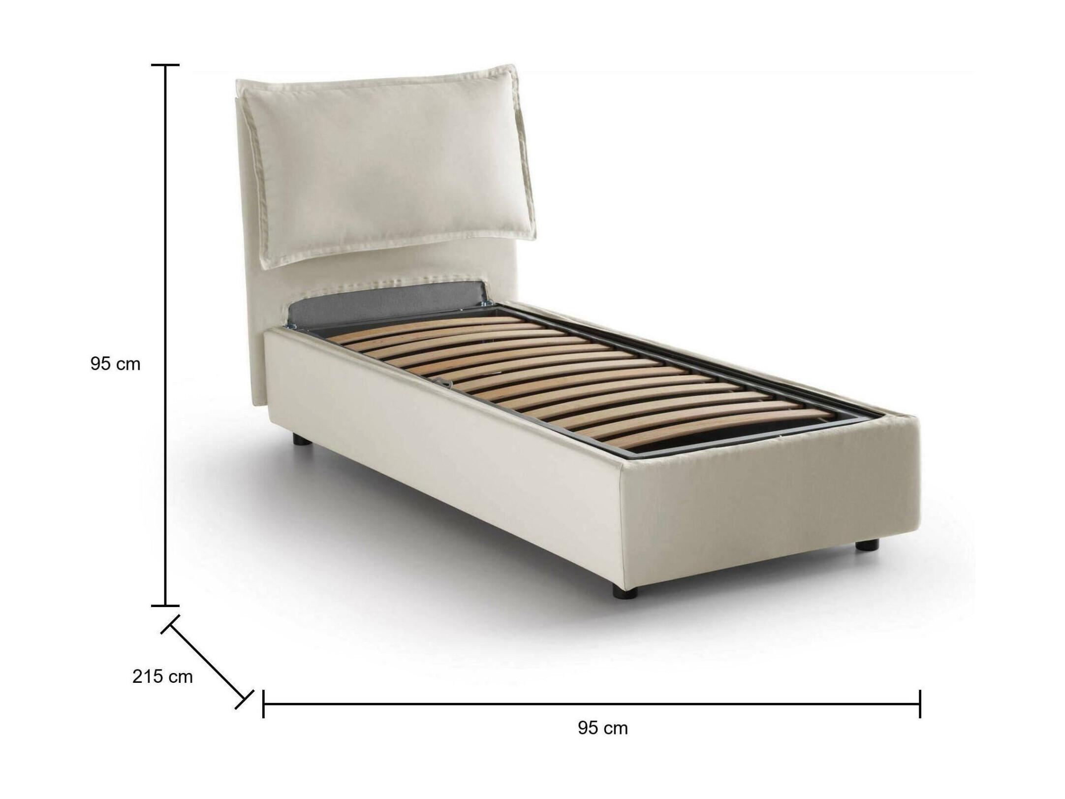 Lit simple Gemma, Lit coffre avec revêtement en tissu, 100% Made in Italy, Ouverture frontale, adapté pour matelas 80x200 cm, Beige