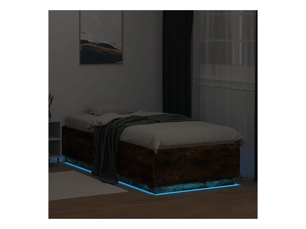 Lit simple | Lit adulte, enfant | Cadre de lit avec LED chêne fumé 100x200 cm