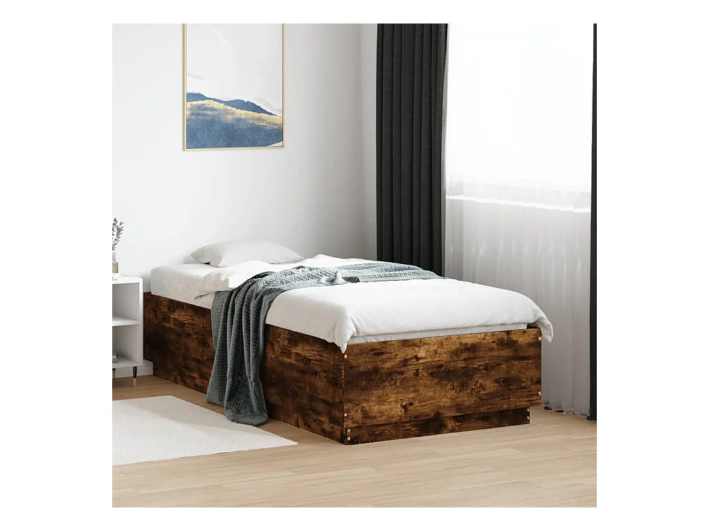 Lit simple | Lit adulte, enfant | Cadre de lit avec LED chêne fumé 90x190 cm
