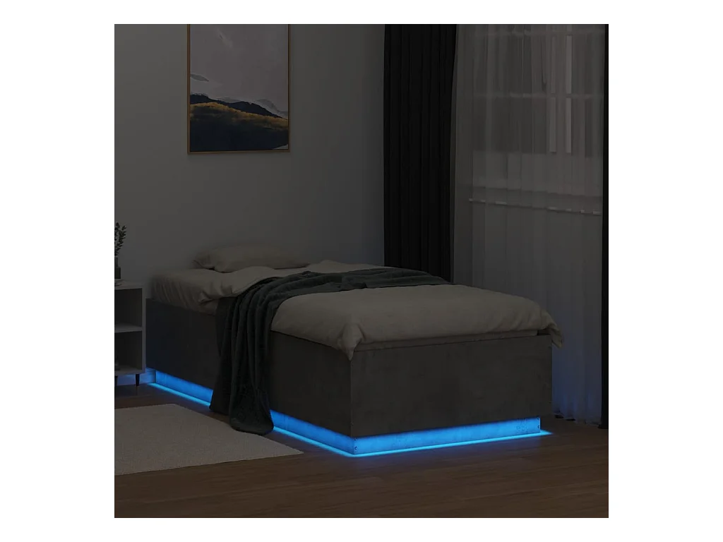 Lit simple | Lit adulte, enfant | Cadre de lit avec LED gris béton 90x190 cm