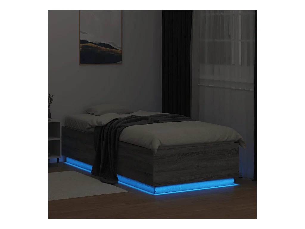 Lit simple | Lit adulte, enfant | Cadre de lit avec LED sonoma gris 90x200 cm