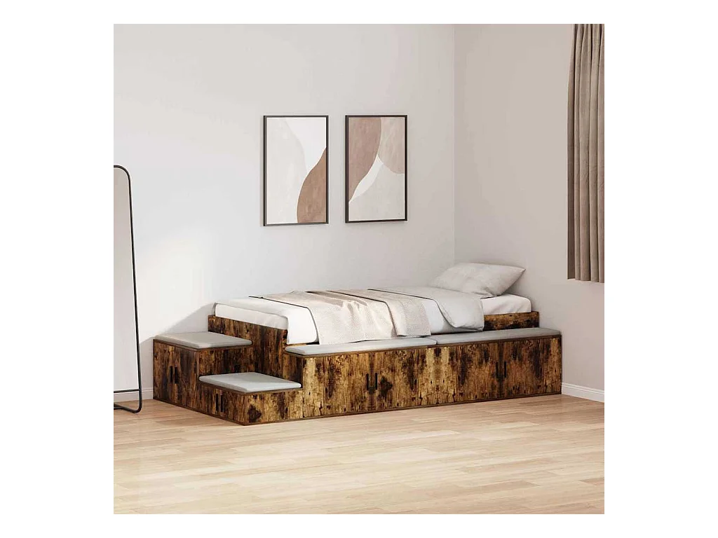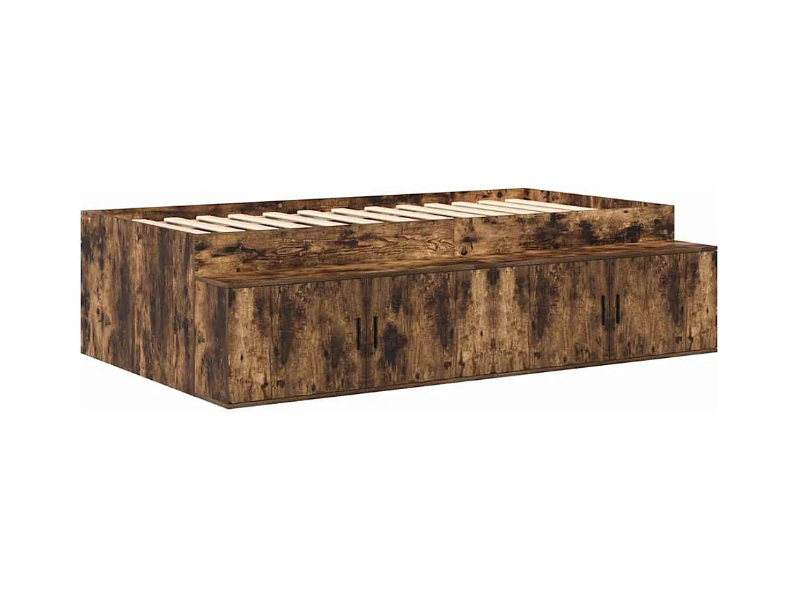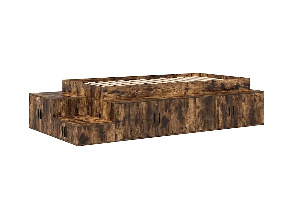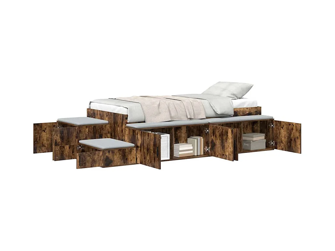 Lit simple | Lit adulte, enfant | Cadre de lit avec rangement Chêne fumé 90x200 cm cm
