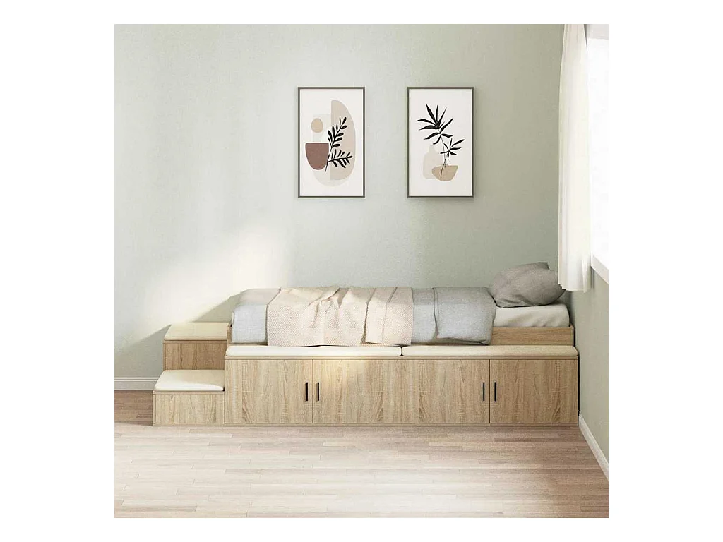 Lit simple | Lit adulte, enfant | Cadre de lit avec rangement Chêne Sonoma 234x103x53.5 cm