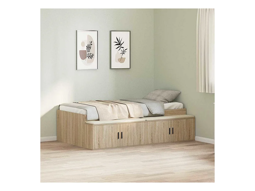 Lit simple | Lit adulte, enfant | Cadre de lit avec rangement Chêne sonoma 90x190 cm