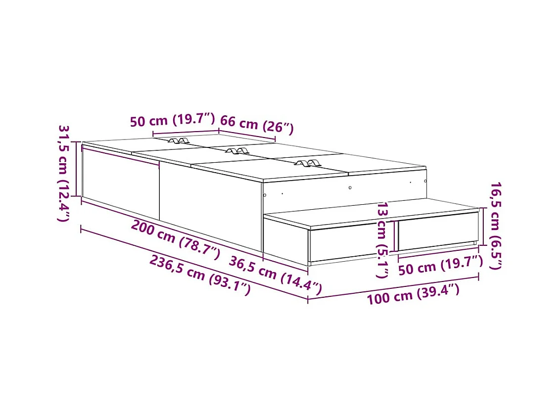 Lit simple | Lit adulte, enfant | Cadre de lit avec rangement Sonoma gris 236.5x100x31.5 cm