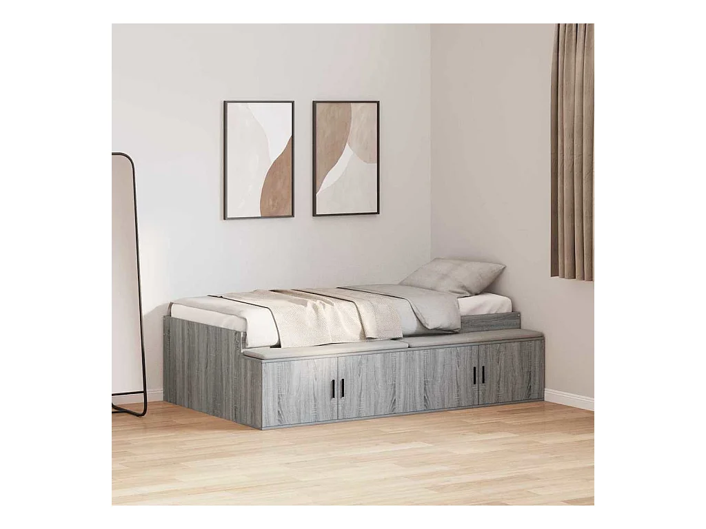 Lit simple | Lit adulte, enfant | Cadre de lit avec rangement Sonoma gris 75x190 cm
