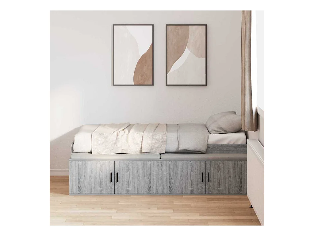 Lit simple | Lit adulte, enfant | Cadre de lit avec rangement Sonoma gris 90x190 cm