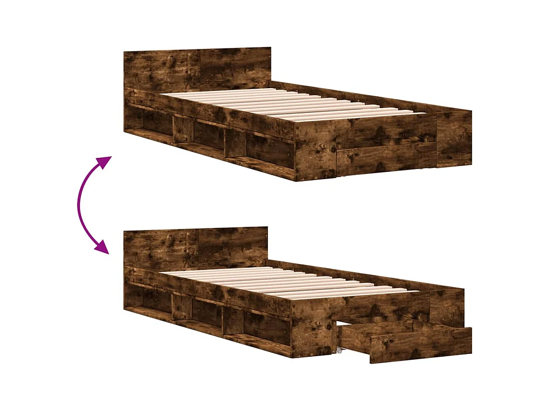 Lit simple | Lit adulte, enfant | Cadre de lit avec tiroir chêne fumé 90x200 cm