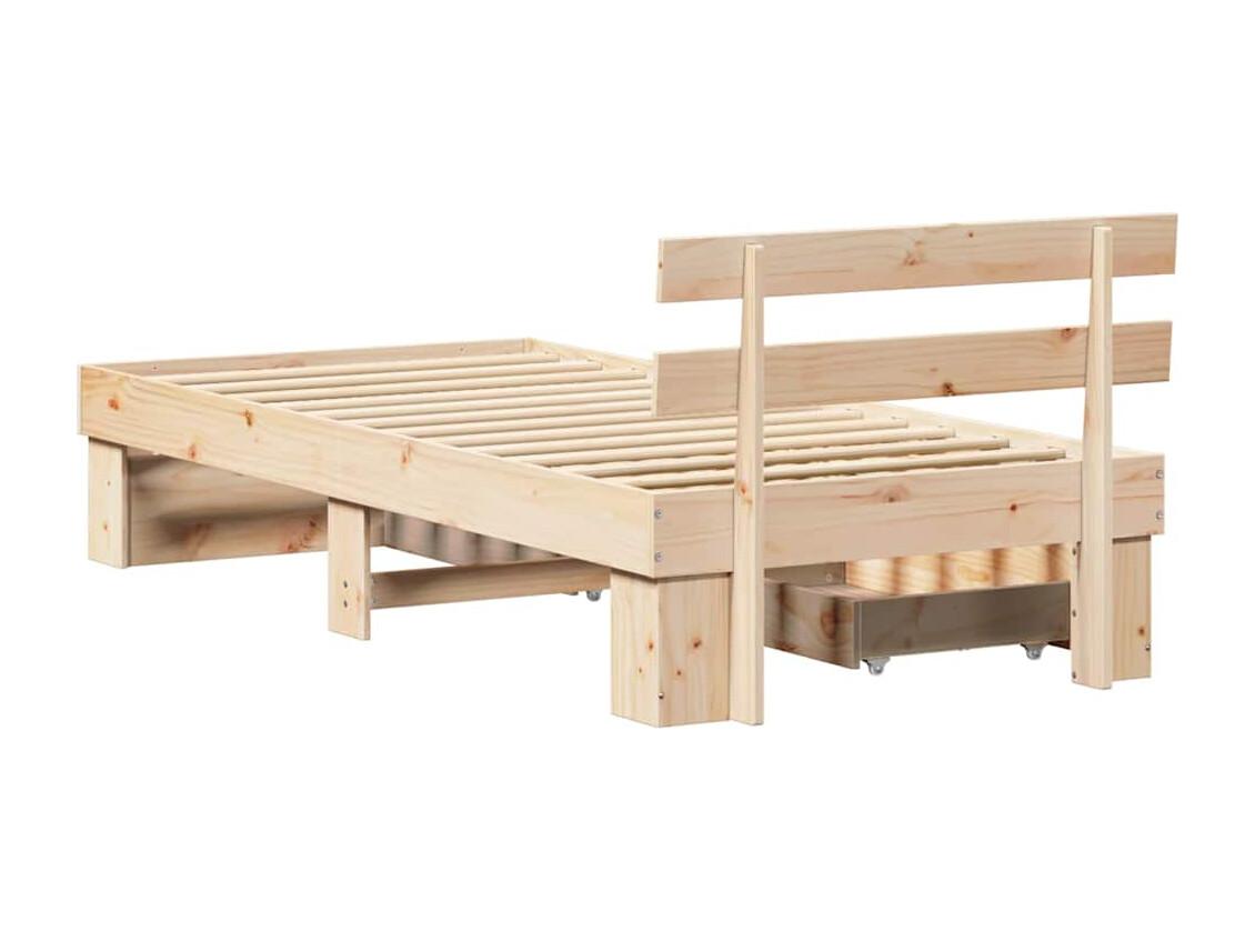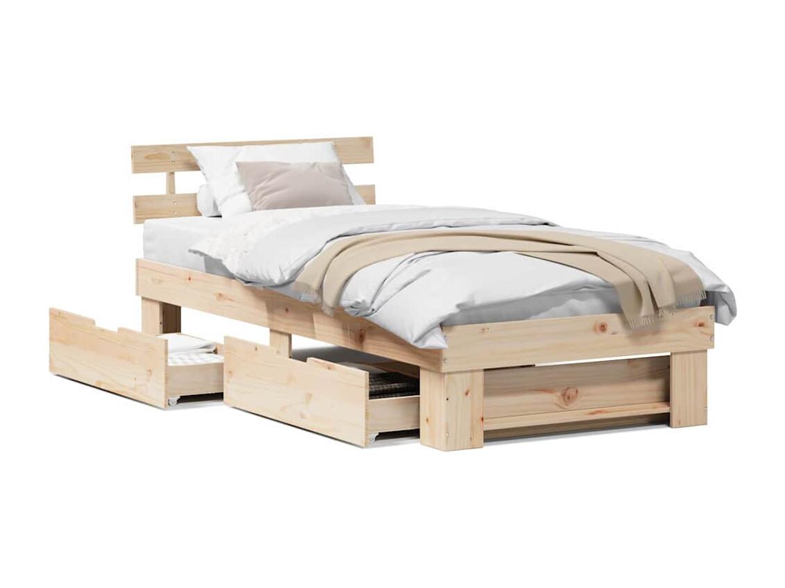 Lit simple | Lit adulte, enfant | Cadre de lit avec tiroir Marron 90x190 cm Bois massif en pin