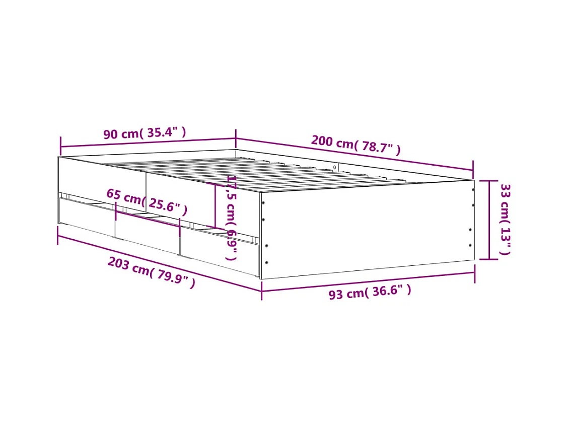 Lit simple | Lit adulte, enfant | Cadre de lit avec tiroirs blanc 90x200 cm
