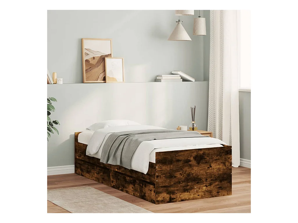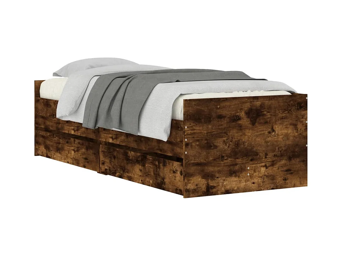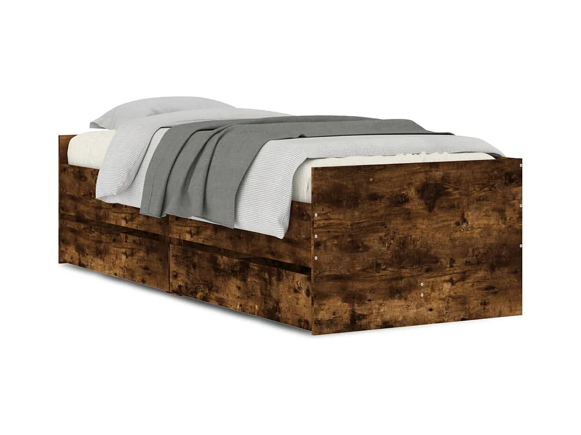 Lit simple | Lit adulte, enfant | Cadre de lit avec tiroirs chêne fumé 100x200 cm