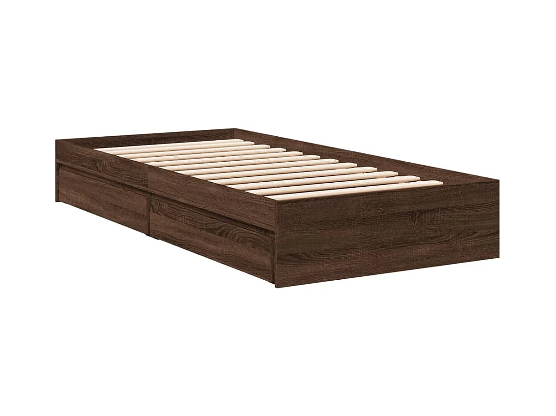 Lit simple | Lit adulte, enfant | Cadre de lit avec tiroirs chêne marron 75x190 cm