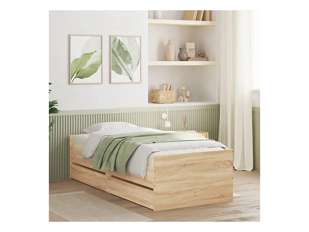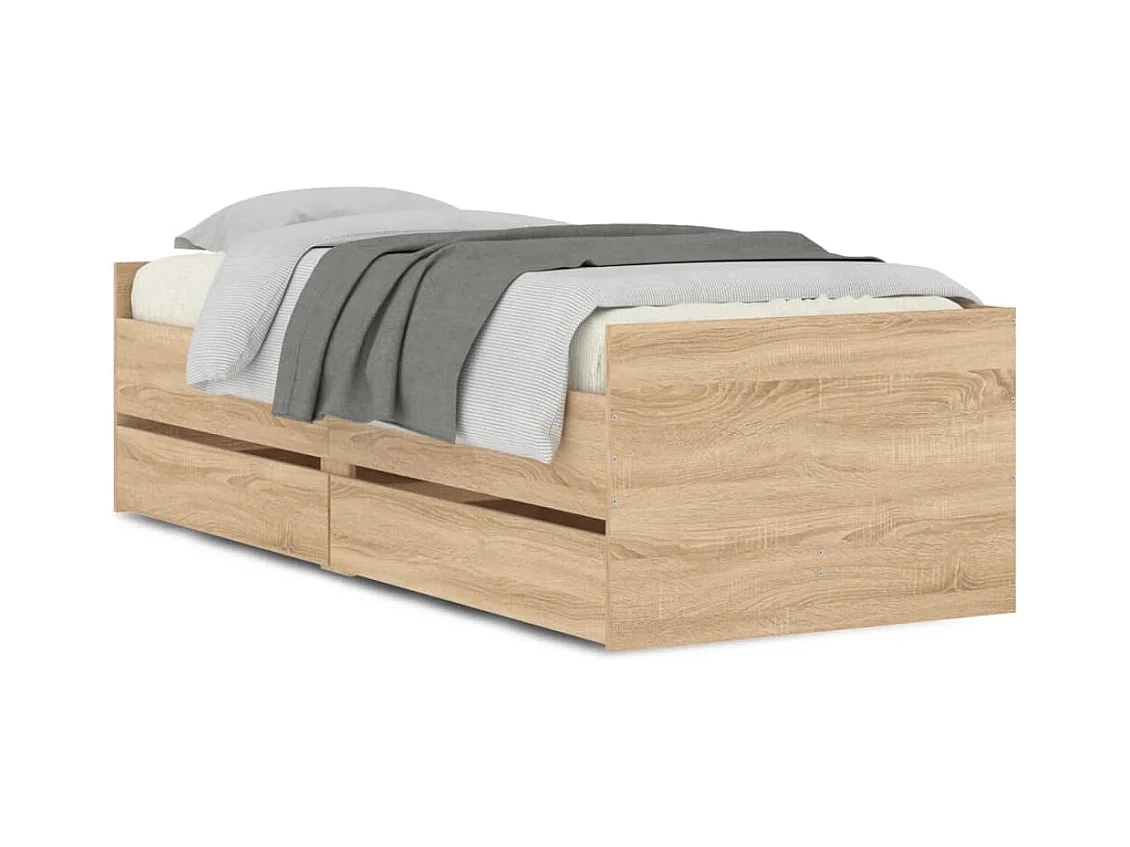 Lit simple | Lit adulte, enfant | Cadre de lit avec tiroirs chêne sonoma 100x200 cm