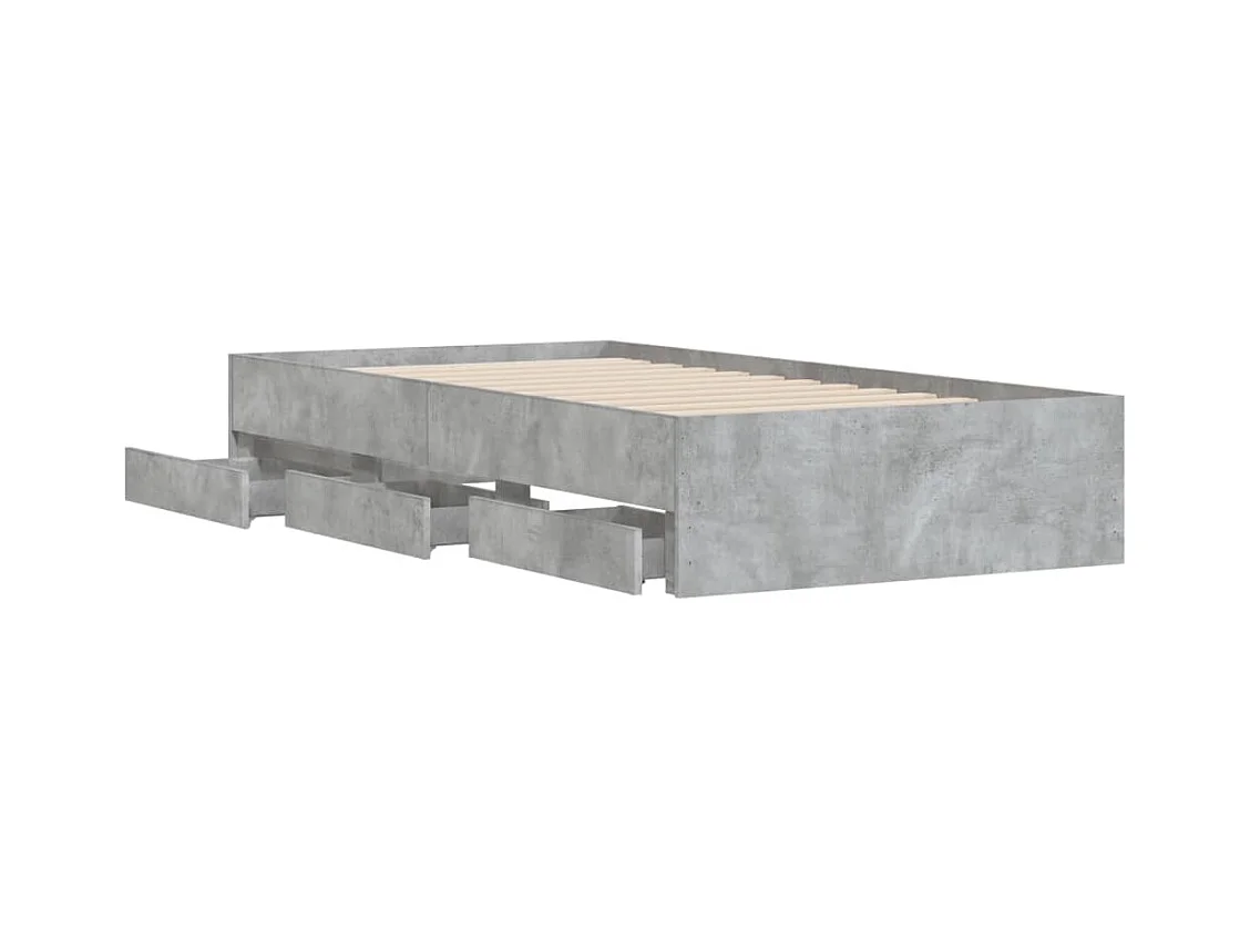 Lit simple | Lit adulte, enfant | Cadre de lit avec tiroirs gris béton 75x190 cm
