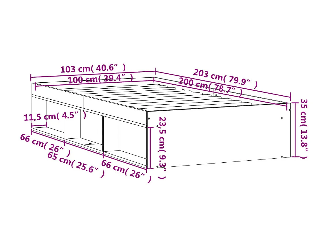 Lit simple | Lit adulte, enfant | Cadre de lit chêne fumé 100x200 cm