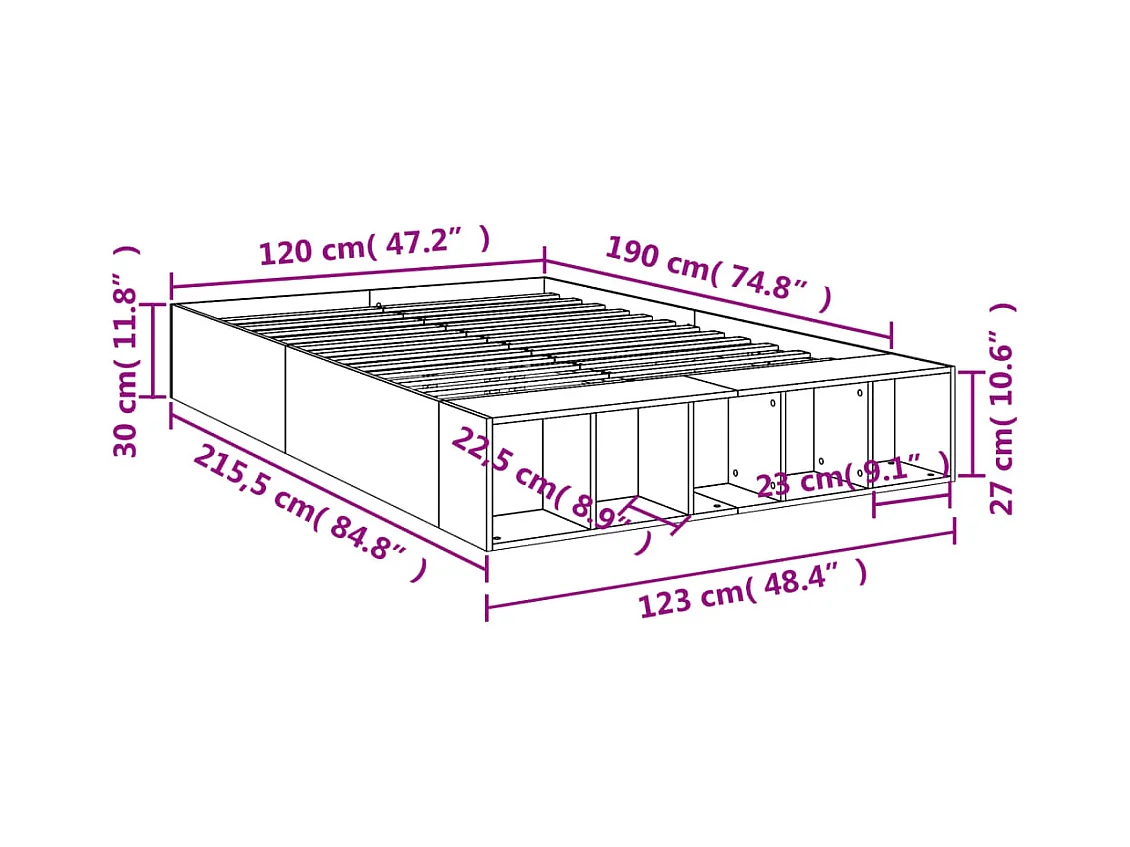 Lit simple | Lit adulte, enfant | Cadre de lit chêne sonoma 120x190 cm