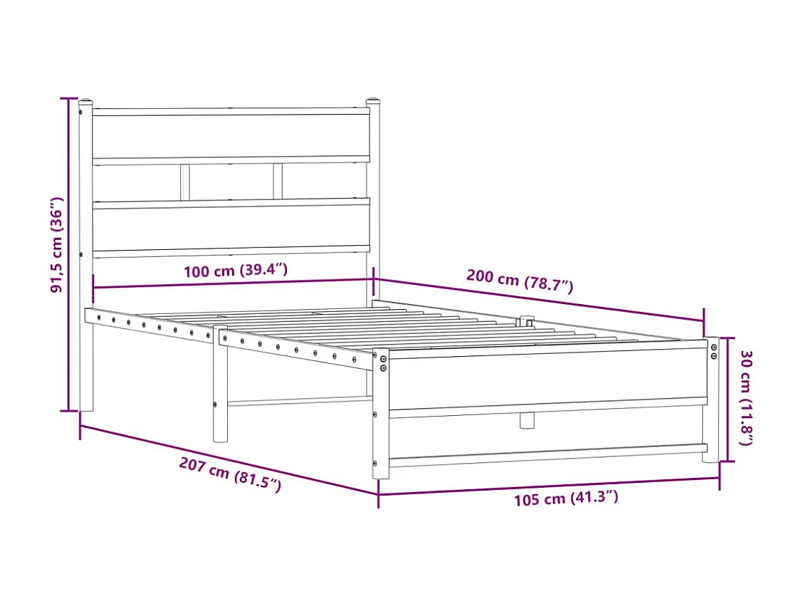 Cadre de lit en métal sans matelas chêne fumé 100x200 cm
