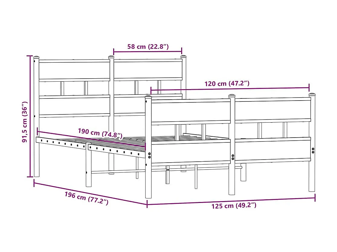 Lit simple | Lit adulte, enfant | Cadre de lit en métal chêne sonoma 120x190 cm