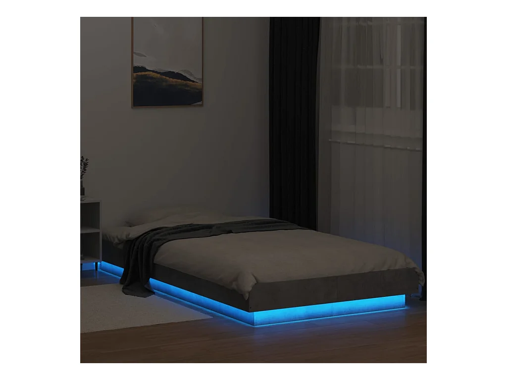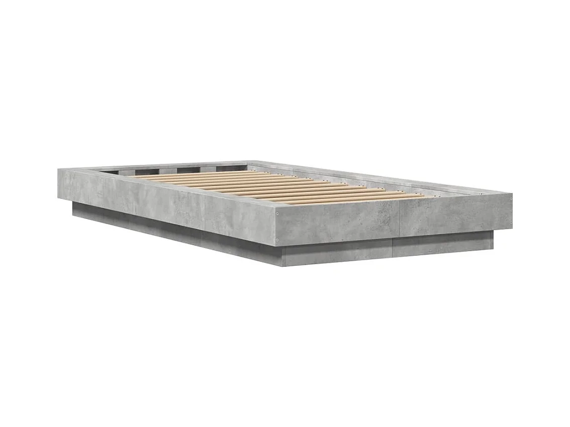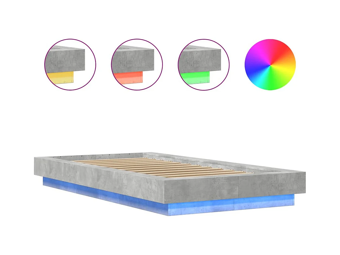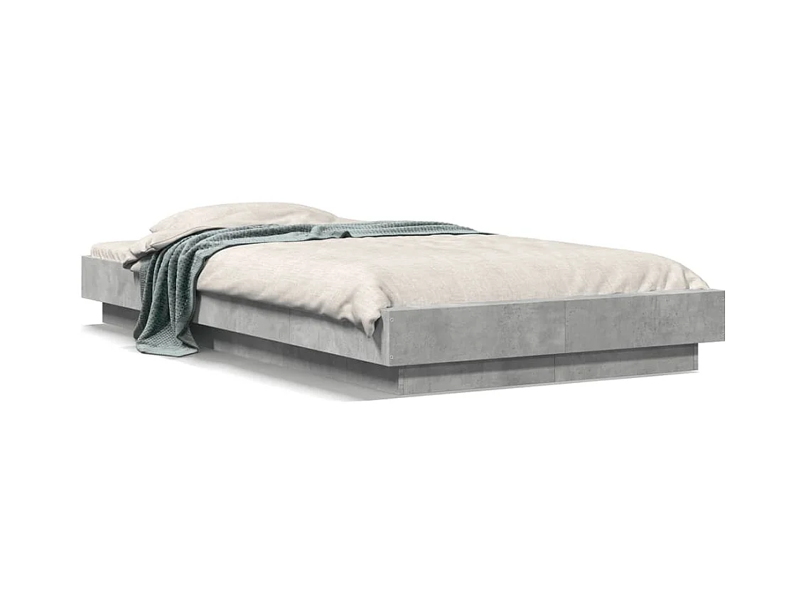 Lit simple | Lit adulte, enfant | Cadre de lit et lumières LED gris béton 75x190 cm
