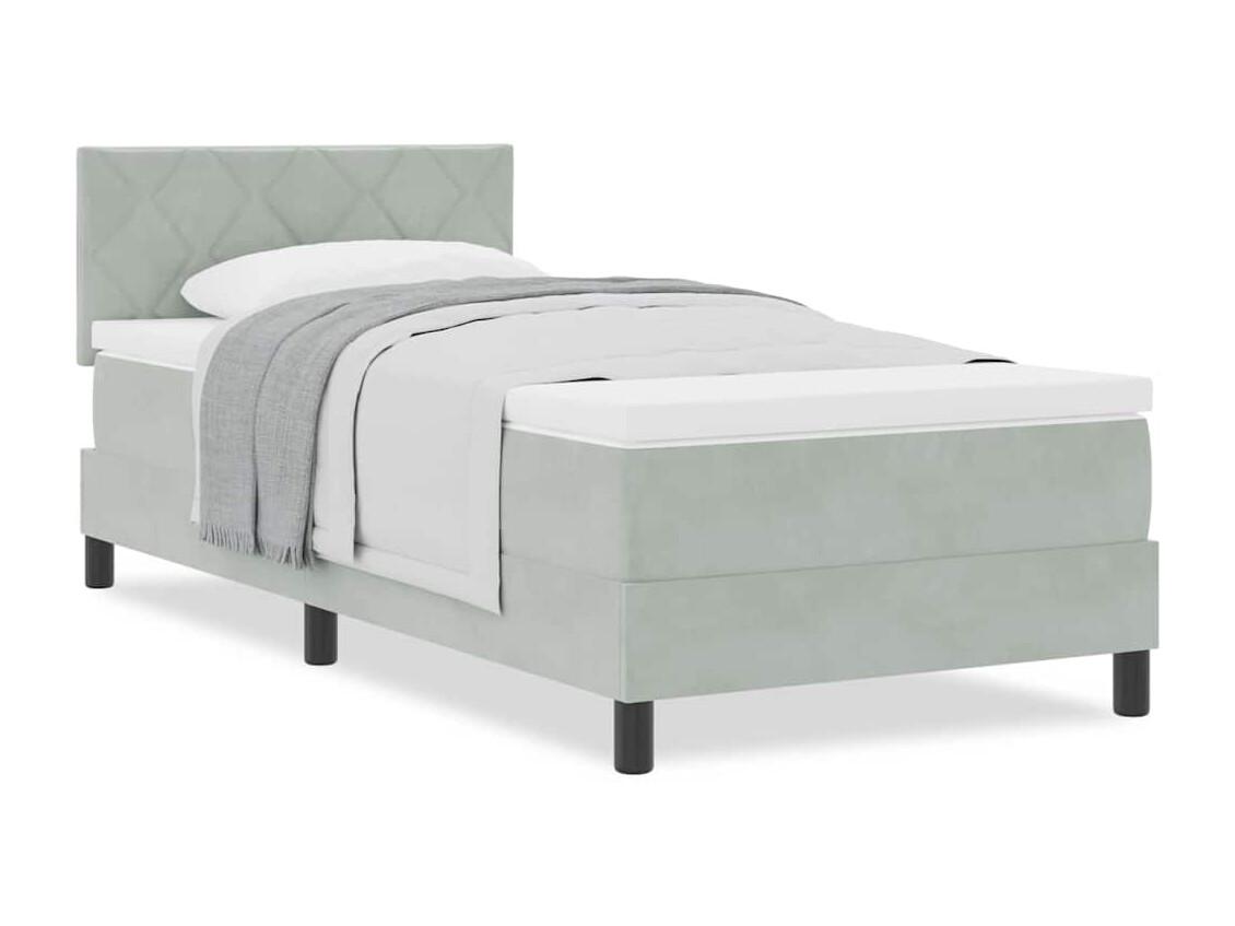 Lit simple-Lit adulte-Lit à ressorts avec matelas Gris clair 90 x 200 cm tissu