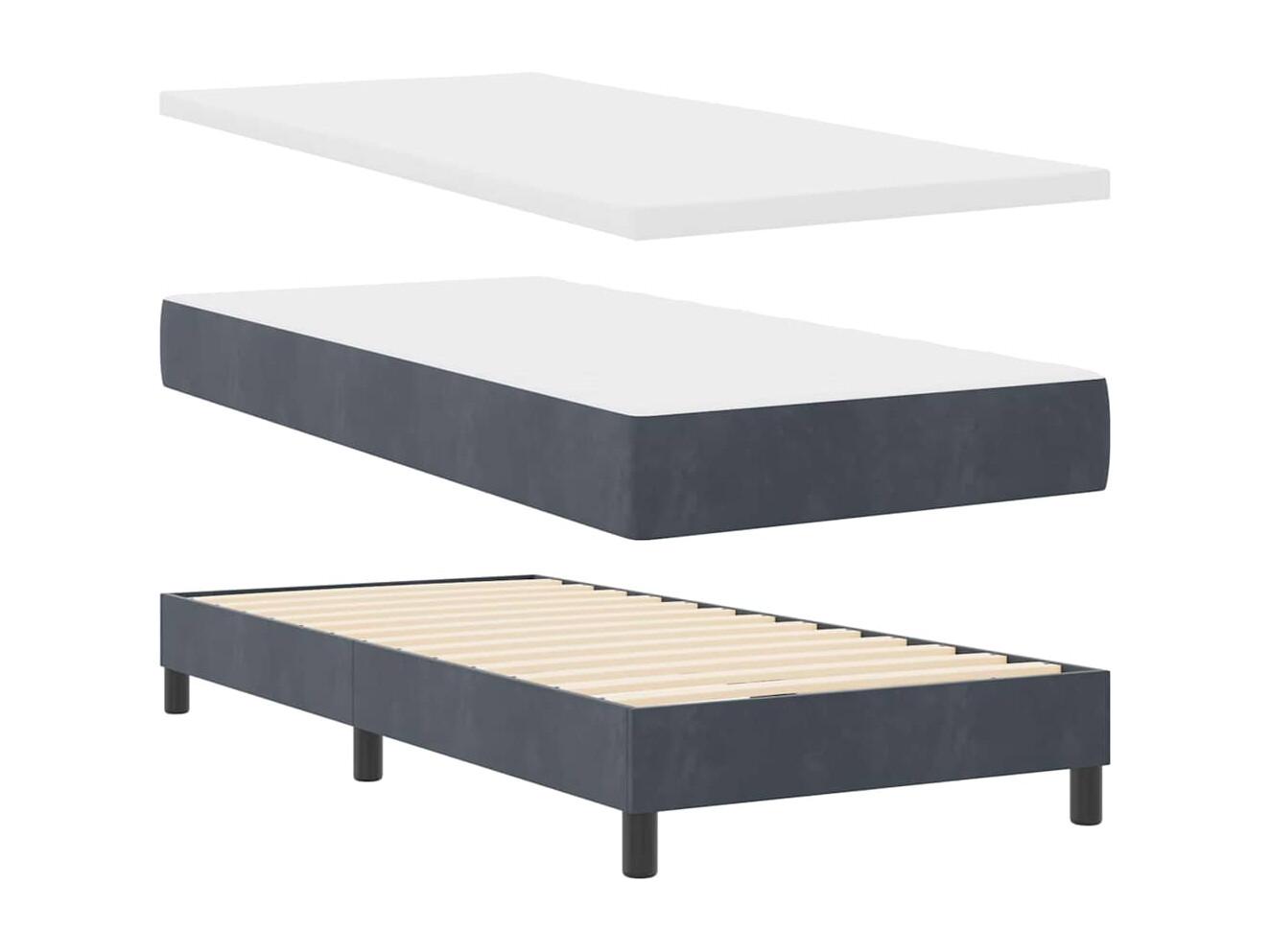Lit simple-Lit adulte-Lit à ressorts avec matelas Gris foncé 90 x 190 cm tissu