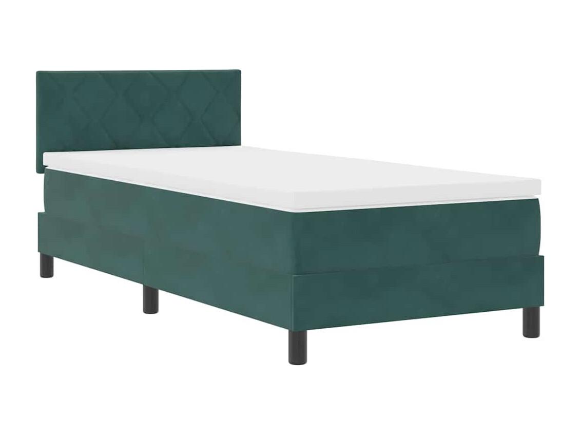 Lit simple-Lit adulte-Lit à ressorts avec matelas Vert foncé 90 x 190 cm tissu