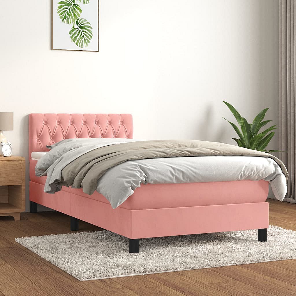 Lit simple-Lit adulte-Sommier à lattes de lit avec matelas Rose 90x190 cm Velours