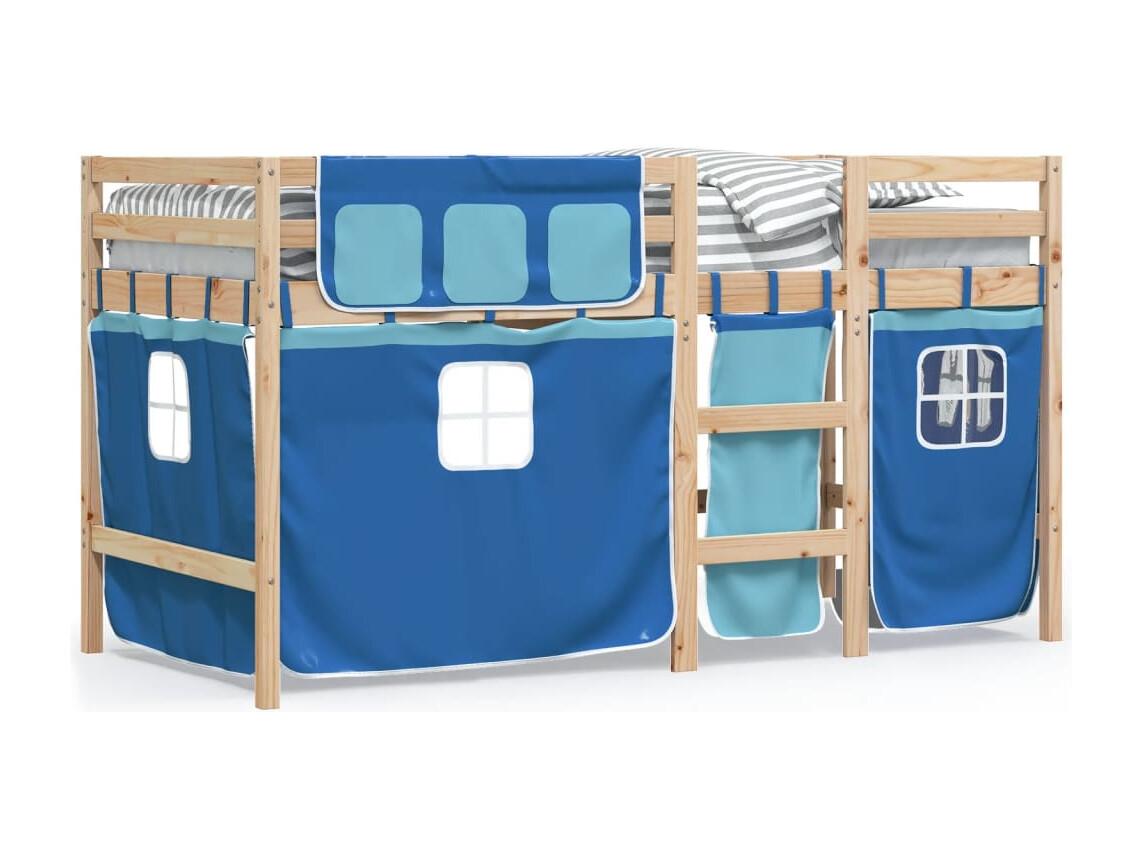 Lit simple-Lit mezzanine enfant avec rideaux sans matelas bleu 80x200cm