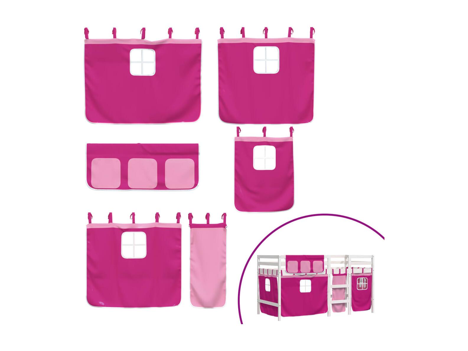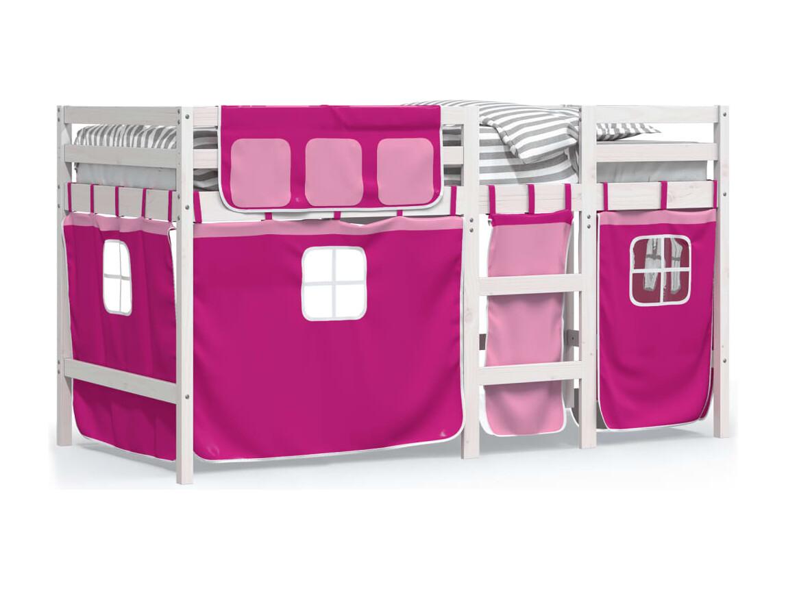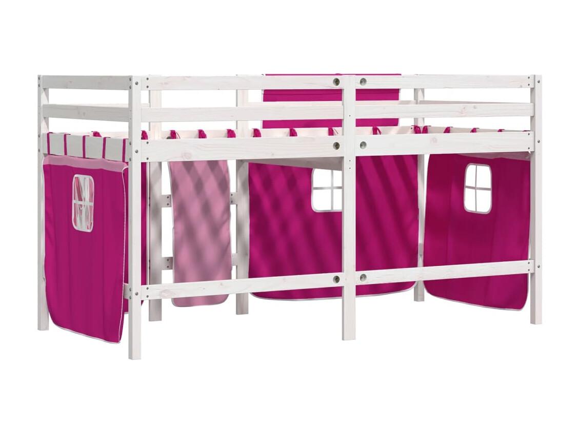 Lit simple-Lit mezzanine enfant avec rideaux sans matelas rose 90x190 cm