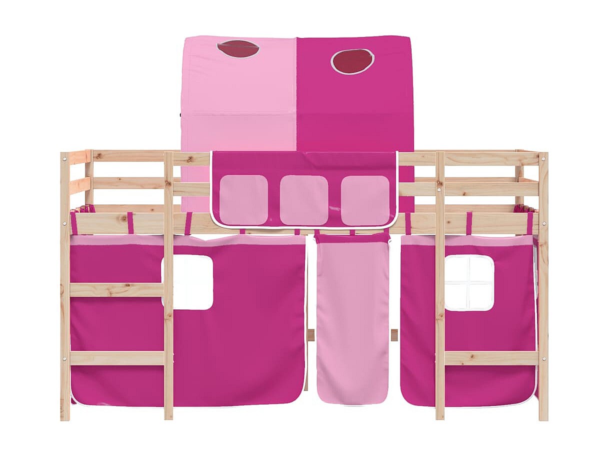 Lit simple-Lit mezzanine enfant avec tunnel sans matelas rose 90x190 cm