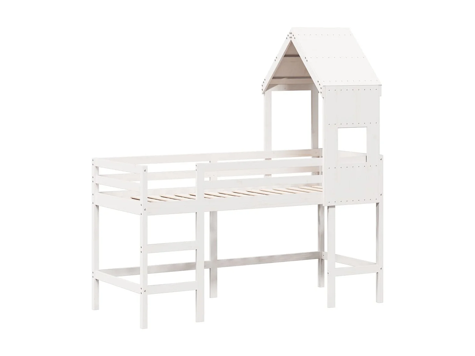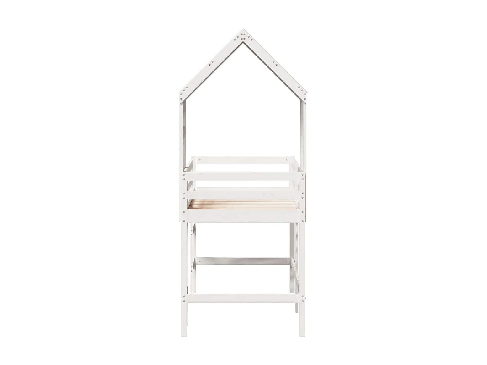 Lit simple-Lit superposé enfant avec échelle et toit sans matelas blanc 90x190 cm